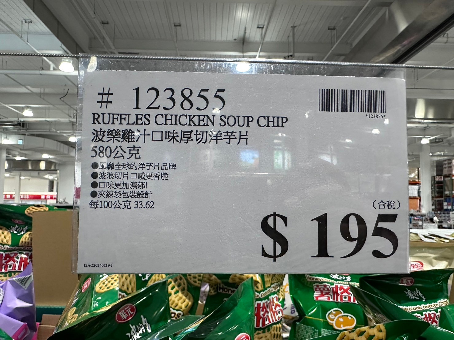 家零食&飲料台灣零食 波樂雞汁口味厚切洋芋片#123855 By 網站小編 2024 年 2 月 26 日 442 產品資訊 產品資訊 產品名稱RUFFLES CHICKEN SOUP CHIP 波樂雞汁口味厚切洋芋片580公克#123855價格195產地台灣包裝規格580公克保存期限依包裝所示備註風靡全球的洋芋片品牌,波浪切片口感更香脆。口味更加濃郁,夾鏈袋包裝設計。→商品問題回報← 相關 標籤波樂洋芋片雞汁 前一篇文章PUMA男刷毛短褲#1668880下一篇文章卡迪那95°C厚切鮮脆藷#132322 網站小編https://shopp-day.com 或許你也感興趣 價格優惠資訊 2025好市多客製生日蛋糕價格表 價格優惠資訊 好市多Line社群加入方法 保健品&藥品 新甘木堅胃腸藥顆粒40包 #194496 購仕特-CosBuy 查詢排行 價格優惠資訊 2025好市多客製生日蛋糕價格表 價格優惠資訊 好市多Line社群加入方法 保健品&藥品 新甘木堅胃腸藥顆粒40包 #194496 價格優惠資訊 2025好市多會員護照-春季專案商品一覽表 價格優惠資訊 好市多美國牛肉整箱銷售價格表(2024/5/7) 裝載更多 熱門推薦 美國零食 科克蘭葡萄乾巧克力#959987 冷藏飲品 BLUE DIAMOND 無糖原味杏仁飲1.89L #129794 西班牙零食 MR.BROWNIE 巧克力布郎尼#153753 泰國零食 A&R牛奶巧克力迷你甜筒餅乾#1744884 比利時零食 科克蘭烈酒與波特酒巧克力 #1351451 裝載更多