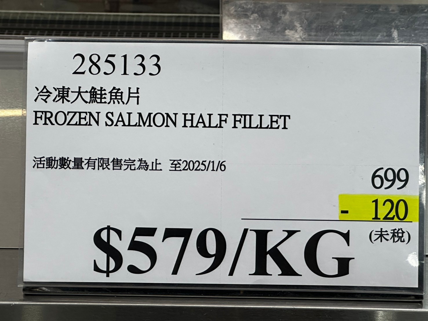 家食品麵包類冷凍食品 冷凍大鮭魚片#285133 By 網站小編 2025 年 2 月 1 日 30 產品資訊 產品資訊 產品名稱冷凍大鮭魚片 FROZEN SALMON HALF FILLET#285133價格699/KG產地依包裝所示包裝規格依包裝所示保存期限依包裝所示備註 →商品問題回報← 相關 標籤鮭魚 前一篇文章冷凍鮭魚一夜干#585133下一篇文章岡山鮮凍牡蠣#285859 網站小編https://shopp-day.com 或許你也感興趣 價格優惠資訊 2025好市多客製生日蛋糕價格表 價格優惠資訊 好市多Line社群加入方法 保健品&藥品 新甘木堅胃腸藥顆粒40包 #194496 購仕特-CosBuy 查詢排行 價格優惠資訊 2025好市多客製生日蛋糕價格表 價格優惠資訊 好市多Line社群加入方法 保健品&藥品 新甘木堅胃腸藥顆粒40包 #194496 價格優惠資訊 2025好市多會員護照-春季專案商品一覽表 價格優惠資訊 好市多美國牛肉整箱銷售價格表(2024/5/7) 裝載更多 熱門推薦 價格優惠資訊 2025好市多客製生日蛋糕價格表 價格優惠資訊 好市多美國牛肉整箱銷售價格表(2024/5/7) 價格優惠資訊 好市多日本和牛價格表 2024.4.29更新 冷藏食品 美國特選無骨牛小排火鍋片#25737 冷藏食品 舊振南英式馬芬米福堡#143387 裝載更多