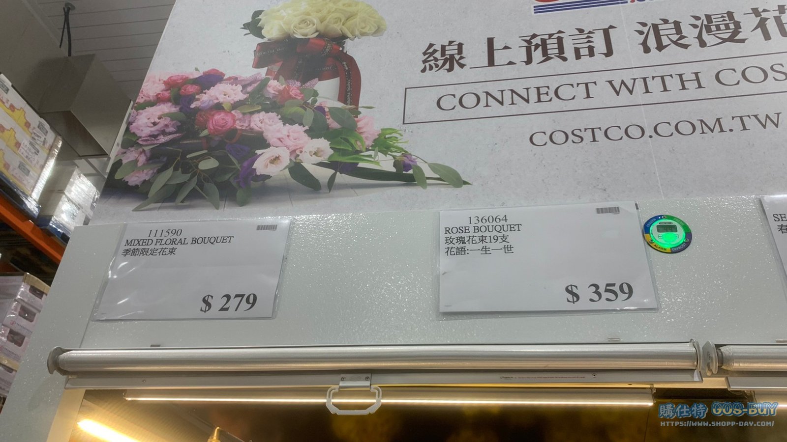 家運動戶外用品園藝相關 好市多花束價格 #111590 #136064 #117849 #28013 By 網站小編 2022 年 3 月 9 日 1773 產品資訊 產品資訊 產品名稱Costco 好市多花束價格 #111590 #136064 #117849 #28013價格–產地台灣包裝規格依包裝所示保存期限依包裝所示備註MIXED FLORAL BOUQUET 季節限定花束 #115900售價:279ROSE BOUQUET 玫瑰花束19支 花語:一生一世 #136064售價:359SEASONAL MIXED BOUQUET春節季節性花束 #117849售價:599GROWERS BUNCH 單一花束(材) #28013售價:179→商品問題回報← 相關 標籤花束 前一篇文章BRAZI BITES CHEESE BREAD 冷凍香酥起司麵包球 1020公克 #1018790下一篇文章KOREAN CHESTNUT 韓國大栗子 1.5公斤 #135498 網站小編https://shopp-day.com 或許你也感興趣 價格優惠資訊 2025好市多客製生日蛋糕價格表 價格優惠資訊 好市多Line社群加入方法 保健品&藥品 新甘木堅胃腸藥顆粒40包 #194496 購仕特-CosBuy 查詢排行 價格優惠資訊 2025好市多客製生日蛋糕價格表 價格優惠資訊 好市多Line社群加入方法 保健品&藥品 新甘木堅胃腸藥顆粒40包 #194496 價格優惠資訊 2025好市多會員護照-春季專案商品一覽表 價格優惠資訊 好市多美國牛肉整箱銷售價格表(2024/5/7) 裝載更多 熱門推薦 戶外用品 12*16′ TARPS 2 PACK 多功能雙色帆布2入#1600091 旅行用品類 SAMSONITE 22+29吋行李箱二入組#140918 戶外用品 COHO 156公升冰桶 適合露營、釣魚 #1382241 汽機車用品 MICHELIN 米其林18吋輪胎PRIMACY SUV+輪胎 235/60 R18 103V #136585 戶外用品 KETER 戶外儲藏收納箱 #1900462 裝載更多