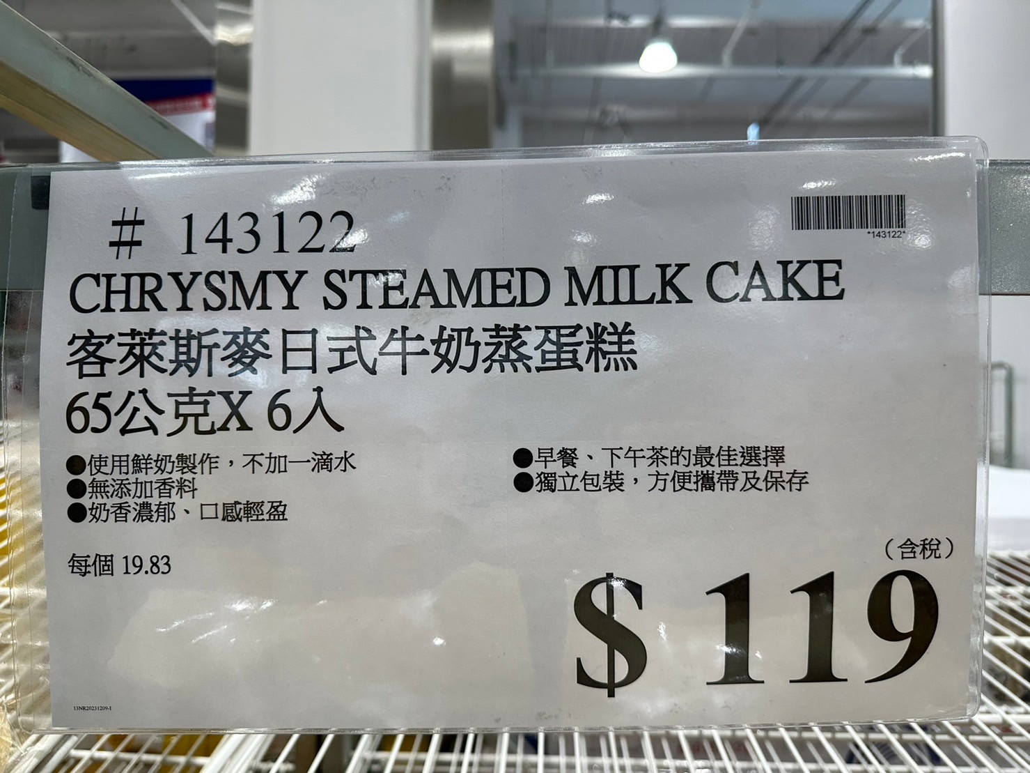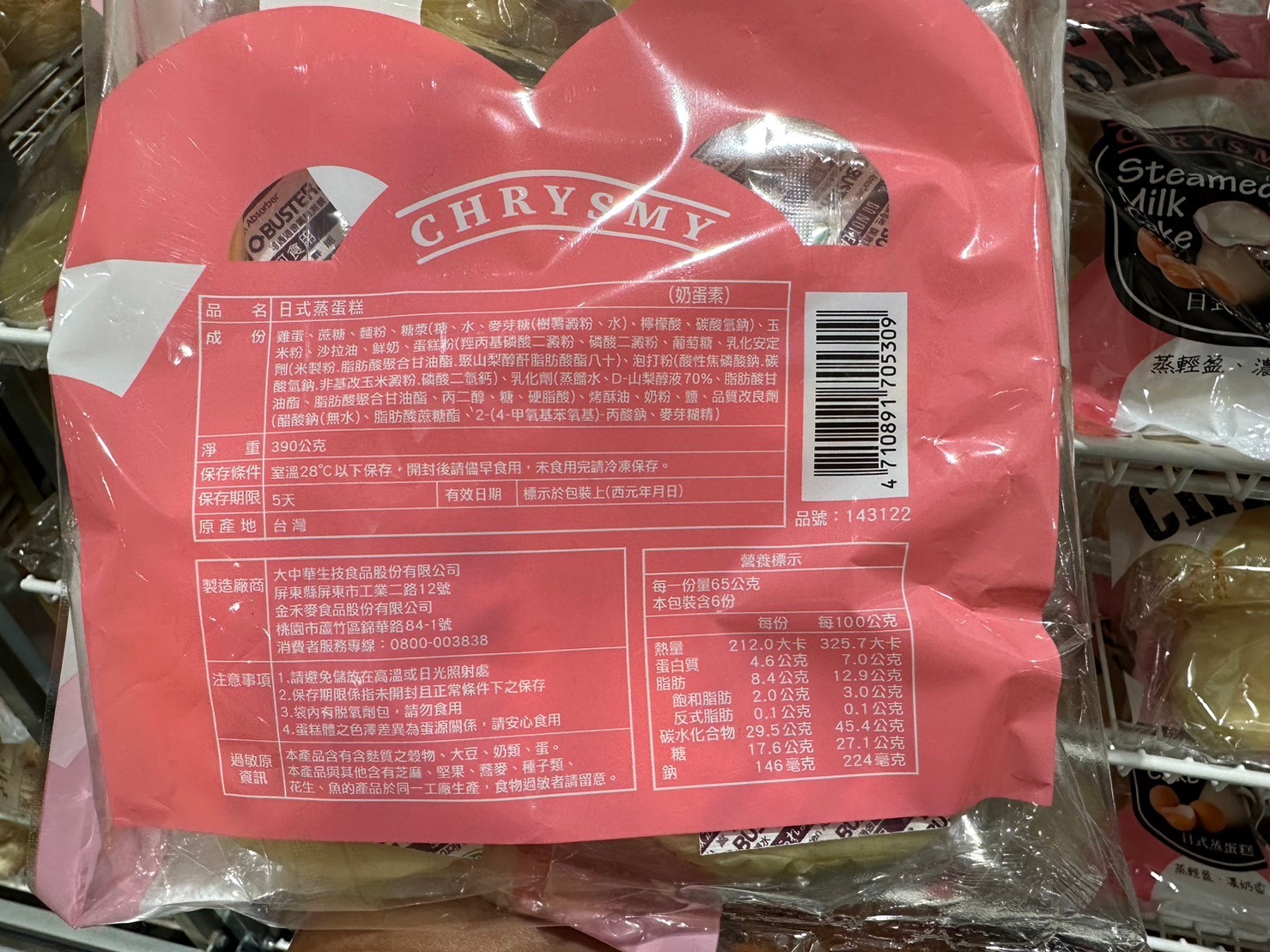 家食品麵包類調味料 客萊斯麥日式牛奶蒸蛋糕#143122 By 網站小編 2023 年 12 月 20 日 1576 產品資訊 產品資訊 產品名稱CHRYSMY STEAMED MILK CAKE 客萊斯麥日式牛奶蒸蛋糕65公克X6入#143122價格119產地台灣包裝規格65公克X6入保存期限五天備註使用鮮奶製作、不加一滴水。無添加香料、奶香濃郁、口感輕盈。早餐、下午茶的最佳選擇。獨立包裝、方便攜帶與保存。→商品問題回報← 相關 標籤客萊斯麥日式牛奶蒸蛋糕蛋糕 前一篇文章WAVERTREE&LONDON澳洲植物精油香皂#239016下一篇文章CHAMPION男長袖刷毛圓領上衣#139782 網站小編https://shopp-day.com 或許你也感興趣 價格優惠資訊 2025好市多客製生日蛋糕價格表 價格優惠資訊 好市多Line社群加入方法 保健品&藥品 新甘木堅胃腸藥顆粒40包 #194496 購仕特-CosBuy 查詢排行 價格優惠資訊 2025好市多客製生日蛋糕價格表 價格優惠資訊 好市多Line社群加入方法 保健品&藥品 新甘木堅胃腸藥顆粒40包 #194496 價格優惠資訊 2025好市多會員護照-春季專案商品一覽表 價格優惠資訊 好市多美國牛肉整箱銷售價格表(2024/5/7) 裝載更多 熱門推薦 價格優惠資訊 2025好市多客製生日蛋糕價格表 價格優惠資訊 好市多美國牛肉整箱銷售價格表(2024/5/7) 價格優惠資訊 好市多日本和牛價格表 2024.4.29更新 冷藏食品 美國特選無骨牛小排火鍋片#25737 冷藏食品 舊振南英式馬芬米福堡#143387 裝載更多