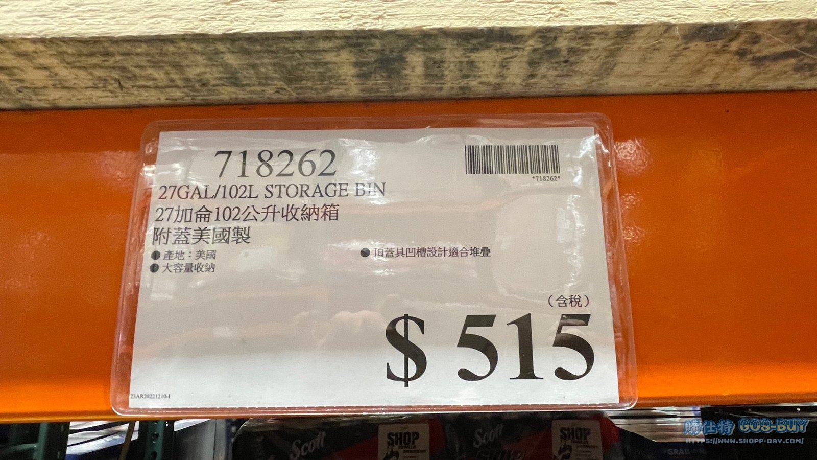STORAGE BIN 27加侖102公升收納箱 附蓋美國製 #718262