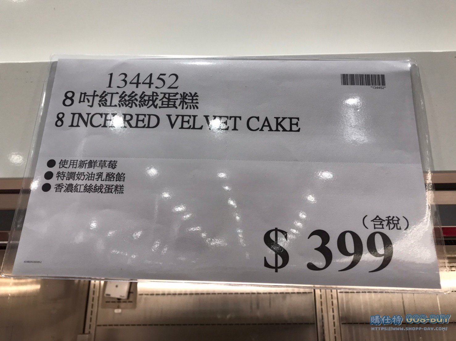 家食品麵包類蛋糕 8 INCHRED VELVET CAKE 8吋紅絲絨蛋糕 #134452 By 網站小編 2022 年 4 月 6 日 264 產品資訊 產品資訊 產品名稱8 INCHRED VELVET CAKE 8吋紅絲絨蛋糕 #134452價格399產地台灣包裝規格依包裝所示保存期限依包裝所示備註使用新鮮草莓特調奶油乳酪餡香濃紅絲絨蛋糕→商品問題回報← 相關 標籤草莓蛋糕 前一篇文章日月潭台茶十八號紅茶#119839下一篇文章PLAIN CHEESE CAKE 10吋原味乳酪蛋糕 #18873 網站小編https://shopp-day.com 或許你也感興趣 價格優惠資訊 2025好市多客製生日蛋糕價格表 價格優惠資訊 好市多Line社群加入方法 保健品&藥品 新甘木堅胃腸藥顆粒40包 #194496 購仕特-CosBuy 查詢排行 價格優惠資訊 2025好市多客製生日蛋糕價格表 價格優惠資訊 好市多Line社群加入方法 保健品&藥品 新甘木堅胃腸藥顆粒40包 #194496 價格優惠資訊 2025好市多會員護照-春季專案商品一覽表 價格優惠資訊 好市多美國牛肉整箱銷售價格表(2024/5/7) 裝載更多 熱門推薦 價格優惠資訊 2025好市多客製生日蛋糕價格表 價格優惠資訊 好市多美國牛肉整箱銷售價格表(2024/5/7) 價格優惠資訊 好市多日本和牛價格表 2024.4.29更新 冷藏食品 美國特選無骨牛小排火鍋片#25737 冷藏食品 舊振南英式馬芬米福堡#143387 裝載更多