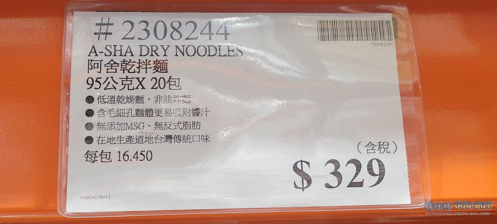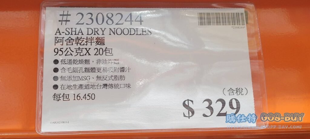 家食品麵包類常溫食品 A-SHA DRY NOODLES 阿舍乾拌麵 95公克X20包 #2308244 By 網站小編 2022 年 2 月 28 日 187 產品資訊 產品資訊 產品名稱A-SHA DRY NOODLES 阿舍乾拌麵 95公克X20包 #2308244價格329產地台灣包裝規格95公克X20包保存期限依包裝所示備註低溫乾燥麵,非油炸麵含毛細孔麵體更易吸附醬汁無添加MSG,無反式脂肪在地生產道地台灣傳統口味→商品問題回報← 相關 標籤拌麵阿舍 前一篇文章農心辛拉麵-黑#114773下一篇文章VEDAN INSTANT NOODLES 味丹炸醬麵 85公克X24入 #115674 網站小編https://shopp-day.com 或許你也感興趣 價格優惠資訊 2025好市多客製生日蛋糕價格表 價格優惠資訊 好市多Line社群加入方法 保健品&藥品 新甘木堅胃腸藥顆粒40包 #194496 購仕特-CosBuy 查詢排行 價格優惠資訊 2025好市多客製生日蛋糕價格表 價格優惠資訊 好市多Line社群加入方法 保健品&藥品 新甘木堅胃腸藥顆粒40包 #194496 價格優惠資訊 2025好市多會員護照-春季專案商品一覽表 價格優惠資訊 好市多美國牛肉整箱銷售價格表(2024/5/7) 裝載更多 熱門推薦 價格優惠資訊 2025好市多客製生日蛋糕價格表 價格優惠資訊 好市多美國牛肉整箱銷售價格表(2024/5/7) 價格優惠資訊 好市多日本和牛價格表 2024.4.29更新 冷藏食品 美國特選無骨牛小排火鍋片#25737 冷藏食品 舊振南英式馬芬米福堡#143387 裝載更多