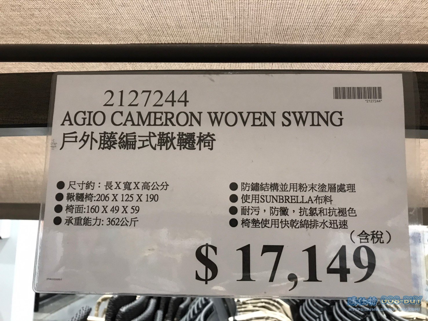AGIO CAMERON WOVEN SWING 戶外藤編式鞦韆椅 #2127244