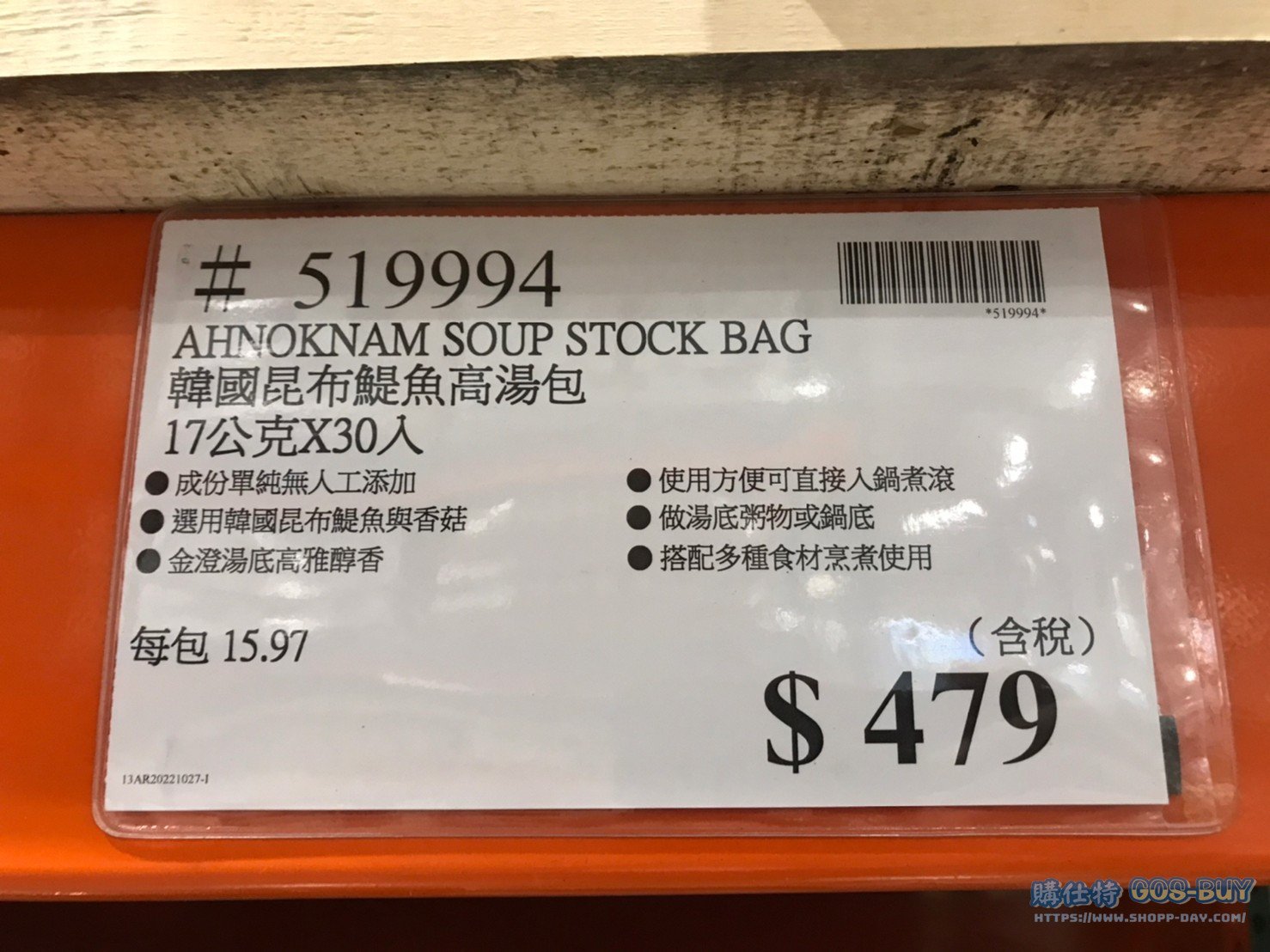 AHNOKNAM韓國昆布鯷魚高湯包 #519994