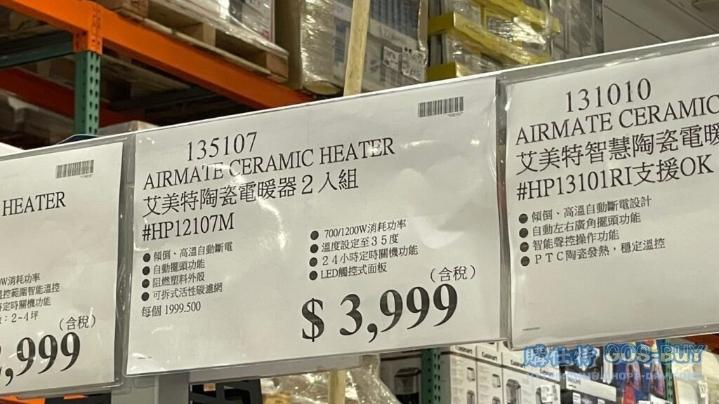 家家電產品 AIRMATE CERAMIC HEATER 艾美特陶瓷電暖器2入組 HP12107M #135107 By 網站小編 2021 年 12 月 26 日 374 產品資訊 產品資訊 產品名稱AIRMATE CERAMIC HEATER 艾美特陶瓷電暖器2入組 HP12107M #135107價格3999產地中國包裝規格2入組 型號:HP12107M保存期限依包裝所示備註頃倒 高溫自動斷電自動擺頭功能阻燃塑料外殼可拆式活性碳濾網700/1200W消耗功率溫度設定至35度24小時定時關機功能LED觸控面板→商品問題回報← 相關 標籤AIRMATE暖爐艾美特電暖爐 前一篇文章ZWILLING MOMENT S 德國雙人深湯鍋含蓋 8公升 #133697下一篇文章SANTECO THERMAL SET MOLLE&NORA 系列 保溫瓶三件組 #133473 網站小編https://shopp-day.com[td_block_7 block_template_id="td_block_template_8" custom_title="大家也在找" border_color="#81d742" category_id="_current_tag"] 或許你也感興趣 價格優惠資訊 2025好市多客製生日蛋糕價格表 價格優惠資訊 好市多Line社群加入方法 保健品&藥品 新甘木堅胃腸藥顆粒40包 #194496 購仕特-CosBuy 查詢排行 價格優惠資訊 2025好市多客製生日蛋糕價格表 價格優惠資訊 好市多Line社群加入方法 保健品&藥品 新甘木堅胃腸藥顆粒40包 #194496 價格優惠資訊 2025好市多會員護照-春季專案商品一覽表 價格優惠資訊 好市多美國牛肉整箱銷售價格表(2024/5/7) 裝載更多 熱門推薦 咖啡機 DOLCE GUSTO GENIO S+ COMBO 雀巢義式膠囊咖啡機 含128顆咖啡膠囊 #128877 冰箱 SHARP夏普變頻雙門冰箱253公升 SJ-H25Y-WH #137098 咖啡機 PHILIPS ESPRESSO MACHINE全自動義式咖啡機 #130890 其他家電用品 TRESANTI FIREPLACE 造型電暖爐 尺寸約193X50X70公分 #124273 咖啡機 雀巢膠囊咖啡機膠囊禮盒組 #137283 裝載更多