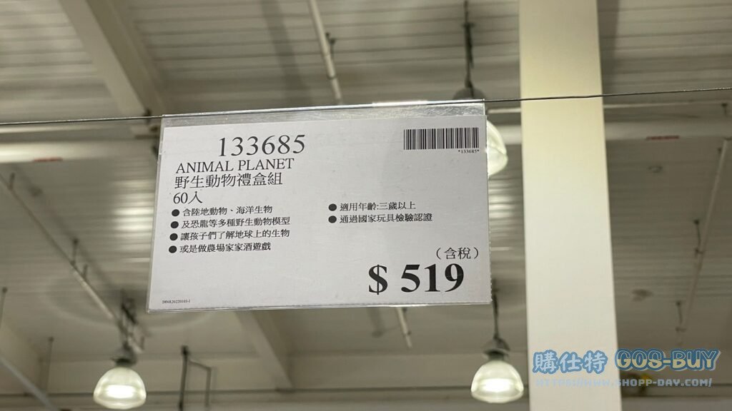 家玩具應景裝飾類小孩玩具 ANIMAL PLANET 野生動物禮盒組 60入 #133685 By 網站小編 2022 年 2 月 8 日 221 產品資訊 產品資訊 產品名稱ANIMAL PLANET 野生動物禮盒組 60入 #133685價格519產地中國包裝規格60入保存期限N/A備註含陸地動物、海洋生物及恐龍等多種野生動物模型讓孩子們了解地球上的生物或是做農場家家酒遊戲適用年齡:三歲以上通過國家玩具檢驗認證 →商品問題回報← 相關 標籤動物模型 前一篇文章BED INC BABY有機棉雙層紗布巾三入組 #131415下一篇文章KidKraft叢林軌道遊戲桌 #2220172 網站小編https://shopp-day.com 或許你也感興趣 價格優惠資訊 2025好市多客製生日蛋糕價格表 價格優惠資訊 好市多Line社群加入方法 保健品&藥品 新甘木堅胃腸藥顆粒40包 #194496 購仕特-CosBuy 查詢排行 價格優惠資訊 2025好市多客製生日蛋糕價格表 價格優惠資訊 好市多Line社群加入方法 保健品&藥品 新甘木堅胃腸藥顆粒40包 #194496 價格優惠資訊 2025好市多會員護照-春季專案商品一覽表 價格優惠資訊 好市多美國牛肉整箱銷售價格表(2024/5/7) 裝載更多 熱門推薦 小孩玩具 LILFANT 雙面遊戲地墊 韓國製 #218570 應景裝飾 8FT LED NUTCRACKER 8呎LED胡桃鉗士兵 長65寬65高244公分 #1486943 應景裝飾 J’ADORE花園多肉治癒系列#139640 健身用品 PARKLON DUAL CUSHION MAT 雙層遊戲軟墊 #635029 應景裝飾 DISNEY TABLE CAROLER 米奇與米妮聖誕音樂裝飾 長31X寬20X高39公分 #1486471 裝載更多