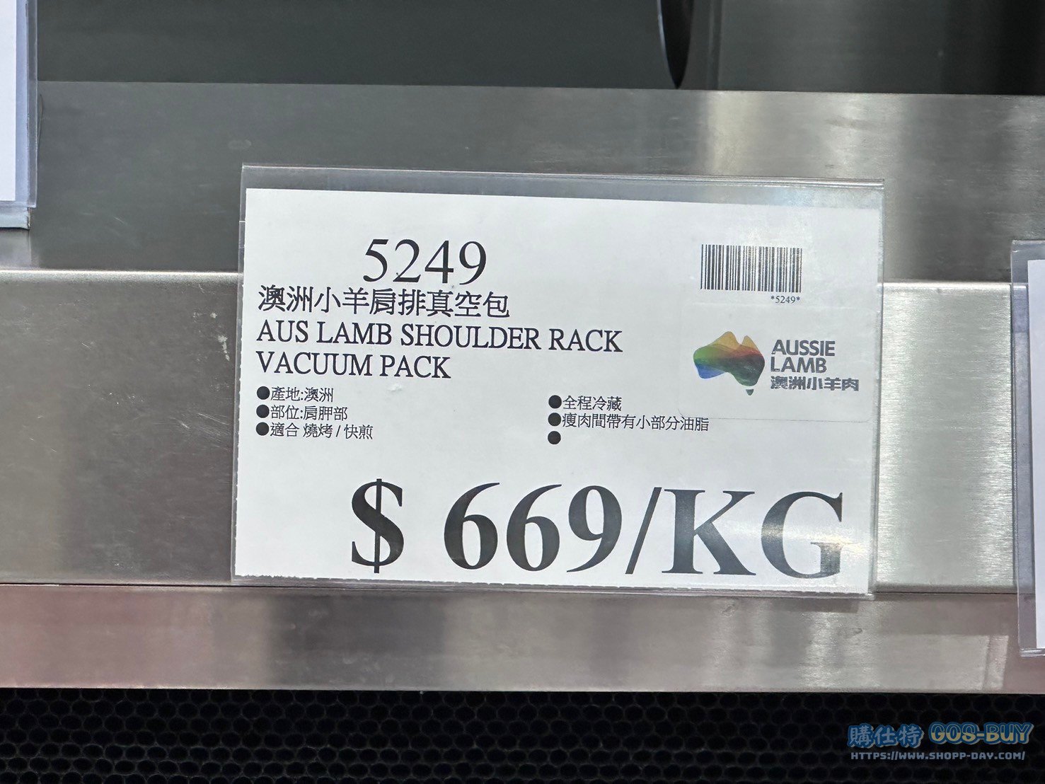 家食品麵包類冷藏食品 澳洲小羊肩排真空包#5249 By 網站小編 2022 年 1 月 11 日 382 產品資訊 產品資訊 產品名稱 AUS LAMB SHOULDER RACK VACUUM PACK 澳洲小羊肩排真空包 #5249 價格 669/KG 產地 澳洲 包裝規格 依包裝所示 保存期限 依包裝所示 備註 產地:澳洲 部位:肩胛部,適合 燒烤/快煎。全程冷藏,瘦肉間袋有小部分油脂。2024/4/15查價價格由769/KG降價為669/KG降價100/KG。 →商品問題回報← 相關 標籤小羊肩澳洲真空包羊肉 前一篇文章澳洲法式小羊排真空包 #36085下一篇文章澳洲法式小羊排 #36086 網站小編https://shopp-day.com 或許你也感興趣 價格優惠資訊 2025好市多客製生日蛋糕價格表 價格優惠資訊 好市多Line社群加入方法 保健品&藥品 新甘木堅胃腸藥顆粒40包 #194496 購仕特-CosBuy 查詢排行 價格優惠資訊 2025好市多客製生日蛋糕價格表 價格優惠資訊 好市多Line社群加入方法 保健品&藥品 新甘木堅胃腸藥顆粒40包 #194496 價格優惠資訊 2025好市多會員護照-春季專案商品一覽表 價格優惠資訊 好市多美國牛肉整箱銷售價格表(2024/5/7) 裝載更多 熱門推薦 價格優惠資訊 2025好市多客製生日蛋糕價格表 價格優惠資訊 好市多美國牛肉整箱銷售價格表(2024/5/7) 價格優惠資訊 好市多日本和牛價格表 2024.4.29更新 冷藏食品 美國特選無骨牛小排火鍋片#25737 冷藏食品 舊振南英式馬芬米福堡#143387 裝載更多