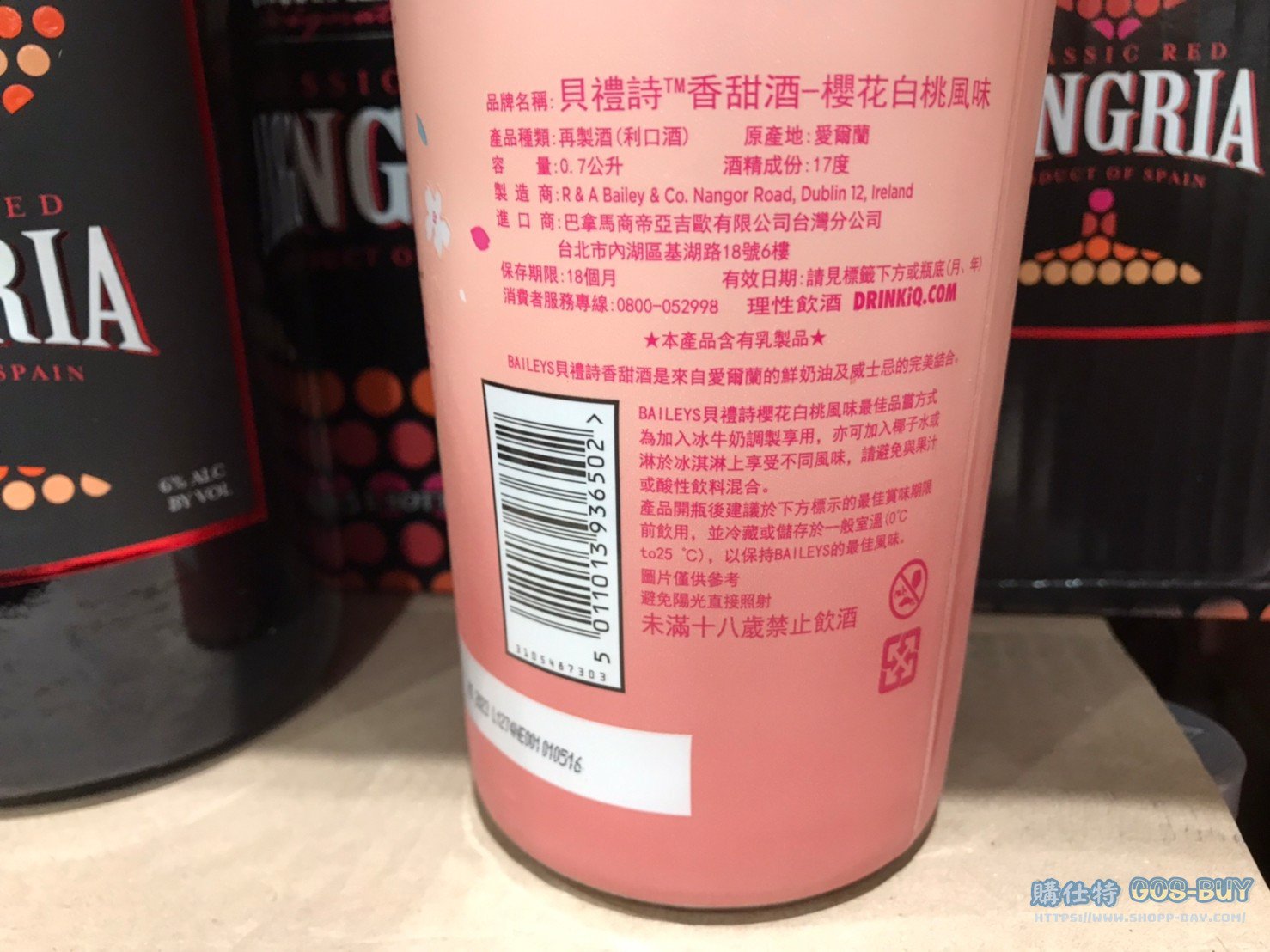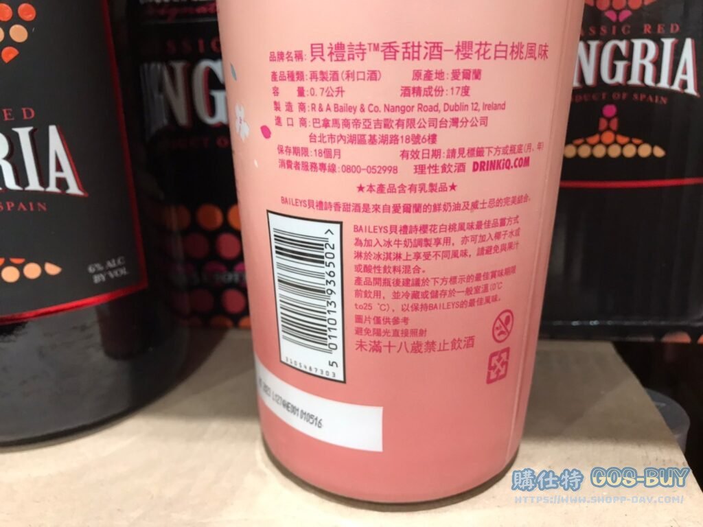 家酒品類奶酒 BAILEY’S 貝禮詩奶油櫻花白桃風味 700ML #133330 By 網站小編 2022 年 5 月 1 日 352 產品資訊 產品資訊 產品名稱BAILEY’S IRISH CREAM SAKURA & WHITE PEACH 700ML 貝禮詩奶油櫻花白桃風味 #133330價格649產地愛爾蘭包裝規格700ML保存期限依包裝所示備註亞洲獨賣 亞洲限定款直接加冰飲用或是淋在冰淇淋作為甜點恬淡櫻花風味賦予清新白桃香氣在滑順愛爾蘭奶油中層層綻放限定夏天風味包裝材質局部絨毛小巧思→商品問題回報← 相關 標籤奶酒白桃貝禮詩 前一篇文章空運新鮮鮭魚排 #205138下一篇文章石安牧場 動福洗選雞蛋L規格30CT #98163 網站小編https://shopp-day.com 或許你也感興趣 價格優惠資訊 2025好市多客製生日蛋糕價格表 價格優惠資訊 好市多Line社群加入方法 保健品&藥品 新甘木堅胃腸藥顆粒40包 #194496 購仕特-CosBuy 查詢排行 價格優惠資訊 2025好市多客製生日蛋糕價格表 價格優惠資訊 好市多Line社群加入方法 保健品&藥品 新甘木堅胃腸藥顆粒40包 #194496 價格優惠資訊 2025好市多會員護照-春季專案商品一覽表 價格優惠資訊 好市多美國牛肉整箱銷售價格表(2024/5/7) 裝載更多 熱門推薦 其他酒類 日本芒果梅酒#143982 威士忌 KAVALAN噶瑪蘭調酒師精選威士忌#129555 葡萄酒 1865 卡貝納蘇維翁紅酒750ML 2019/2020 #113198 葡萄酒 波姆酒莊琥珀金牌紅酒#125623 威士忌 KAVAKAN 噶瑪蘭威士忌酒展商品一覽表 裝載更多
