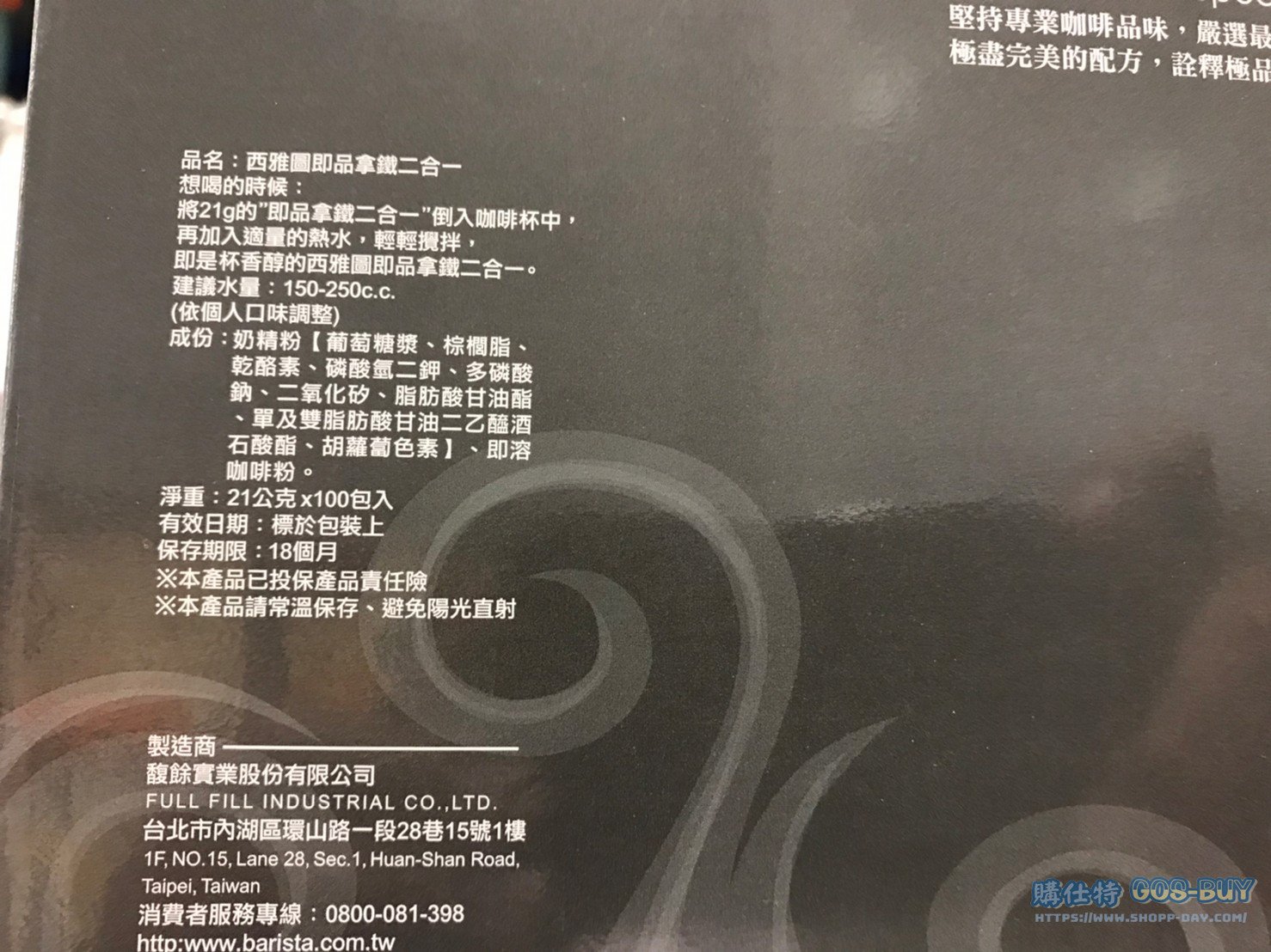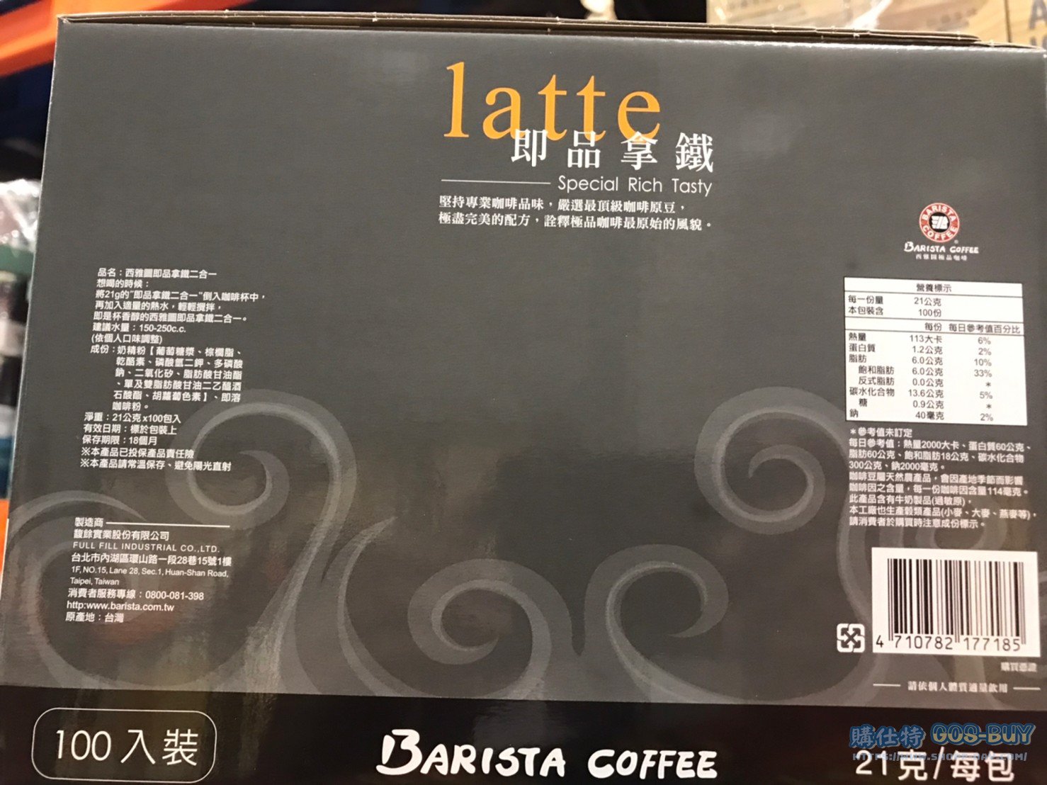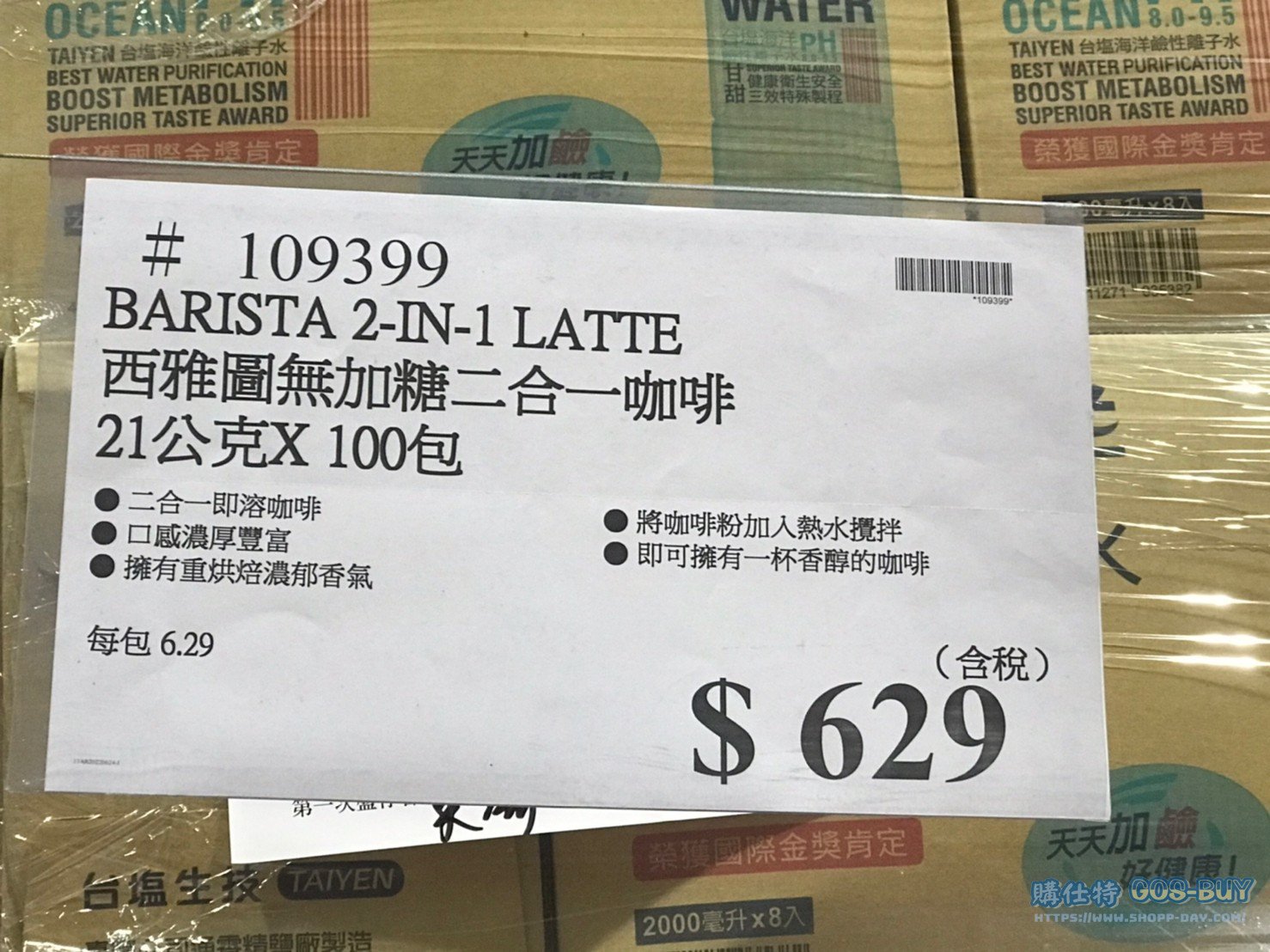 家食品麵包類咖啡製品類 西雅圖無加糖二合一咖啡21公克 X 100包 #109399 By 網站小編 2022 年 5 月 10 日 458 產品資訊 產品資訊 產品名稱BARISTA 2-IN-1 LATTE 西雅圖無加糖二合一咖啡21公克 X 100包 #109399價格629產地台灣包裝規格21公克 X 100包保存期限18個月備註二合一即溶咖啡口感濃厚豐富擁有重烘焙濃郁香氣將咖啡粉加入熱水攪拌即可擁有一杯香醇的咖啡→商品問題回報← 相關 標籤即溶咖啡西雅圖 前一篇文章雀巢美祿巧克力麥芽甜筒#135360下一篇文章SPICED BONELESS CHICKEN 沙嗲去骨清雞腿 #129648 網站小編https://shopp-day.com 或許你也感興趣 價格優惠資訊 2025好市多客製生日蛋糕價格表 價格優惠資訊 好市多Line社群加入方法 保健品&藥品 新甘木堅胃腸藥顆粒40包 #194496 購仕特-CosBuy 查詢排行 價格優惠資訊 2025好市多客製生日蛋糕價格表 價格優惠資訊 好市多Line社群加入方法 保健品&藥品 新甘木堅胃腸藥顆粒40包 #194496 價格優惠資訊 2025好市多會員護照-春季專案商品一覽表 價格優惠資訊 好市多美國牛肉整箱銷售價格表(2024/5/7) 裝載更多 熱門推薦 價格優惠資訊 2025好市多客製生日蛋糕價格表 價格優惠資訊 好市多美國牛肉整箱銷售價格表(2024/5/7) 價格優惠資訊 好市多日本和牛價格表 2024.4.29更新 冷藏食品 美國特選無骨牛小排火鍋片#25737 冷藏食品 舊振南英式馬芬米福堡#143387 裝載更多