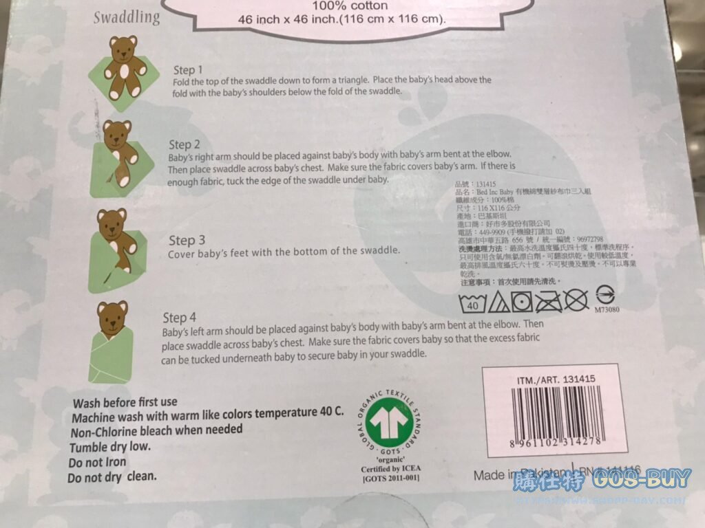 BED INC BABY有機棉雙層紗布巾三入組 #131415