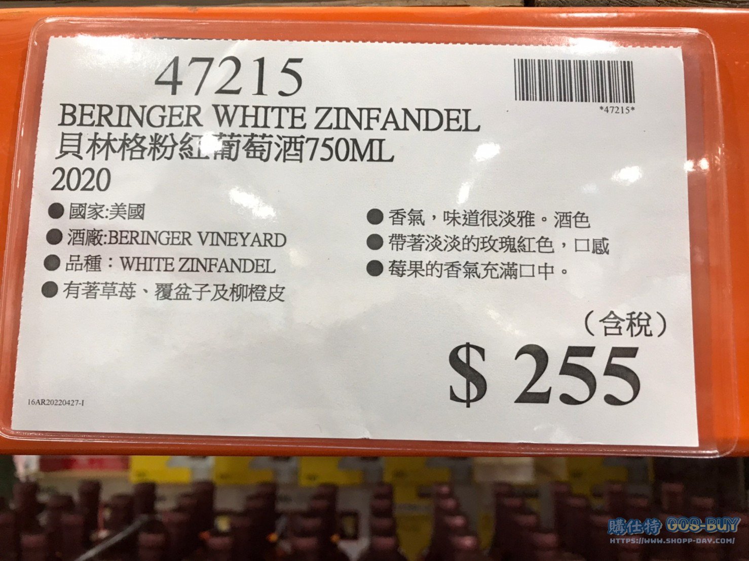 家酒品類葡萄酒 BERINGER WHITE ZINFANDEL 貝林格粉紅葡萄酒750ML 2020 #47215 By 網站小編 2022 年 5 月 24 日 683 產品資訊 產品資訊 產品名稱BERINGER WHITE ZINFANDEL 貝林格粉紅葡萄酒750ML 2020 #47215價格255產地美國包裝規格750ML保存期限依包裝所示備註國家:美國酒廠:BERINGER VINEYARD品種:WHITE ZINFANDEL有著草莓、覆盆子及柳橙皮香氣味道很淡雅。酒色帶有淡淡的玫瑰紅色口感莓果的香氣充滿口中→商品問題回報← 相關 標籤葡萄葡萄酒 前一篇文章好菇道有機組合 120公克X6入 #377908下一篇文章BANROCK S.夏多內白葡萄酒 750ML #33194 網站小編https://shopp-day.com 或許你也感興趣 價格優惠資訊 2025好市多客製生日蛋糕價格表 價格優惠資訊 好市多Line社群加入方法 保健品&藥品 新甘木堅胃腸藥顆粒40包 #194496 購仕特-CosBuy 查詢排行 價格優惠資訊 2025好市多客製生日蛋糕價格表 價格優惠資訊 好市多Line社群加入方法 保健品&藥品 新甘木堅胃腸藥顆粒40包 #194496 價格優惠資訊 2025好市多會員護照-春季專案商品一覽表 價格優惠資訊 好市多美國牛肉整箱銷售價格表(2024/5/7) 裝載更多 熱門推薦 其他酒類 日本芒果梅酒#143982 威士忌 KAVALAN噶瑪蘭調酒師精選威士忌#129555 葡萄酒 1865 卡貝納蘇維翁紅酒750ML 2019/2020 #113198 葡萄酒 波姆酒莊琥珀金牌紅酒#125623 威士忌 KAVAKAN 噶瑪蘭威士忌酒展商品一覽表 裝載更多