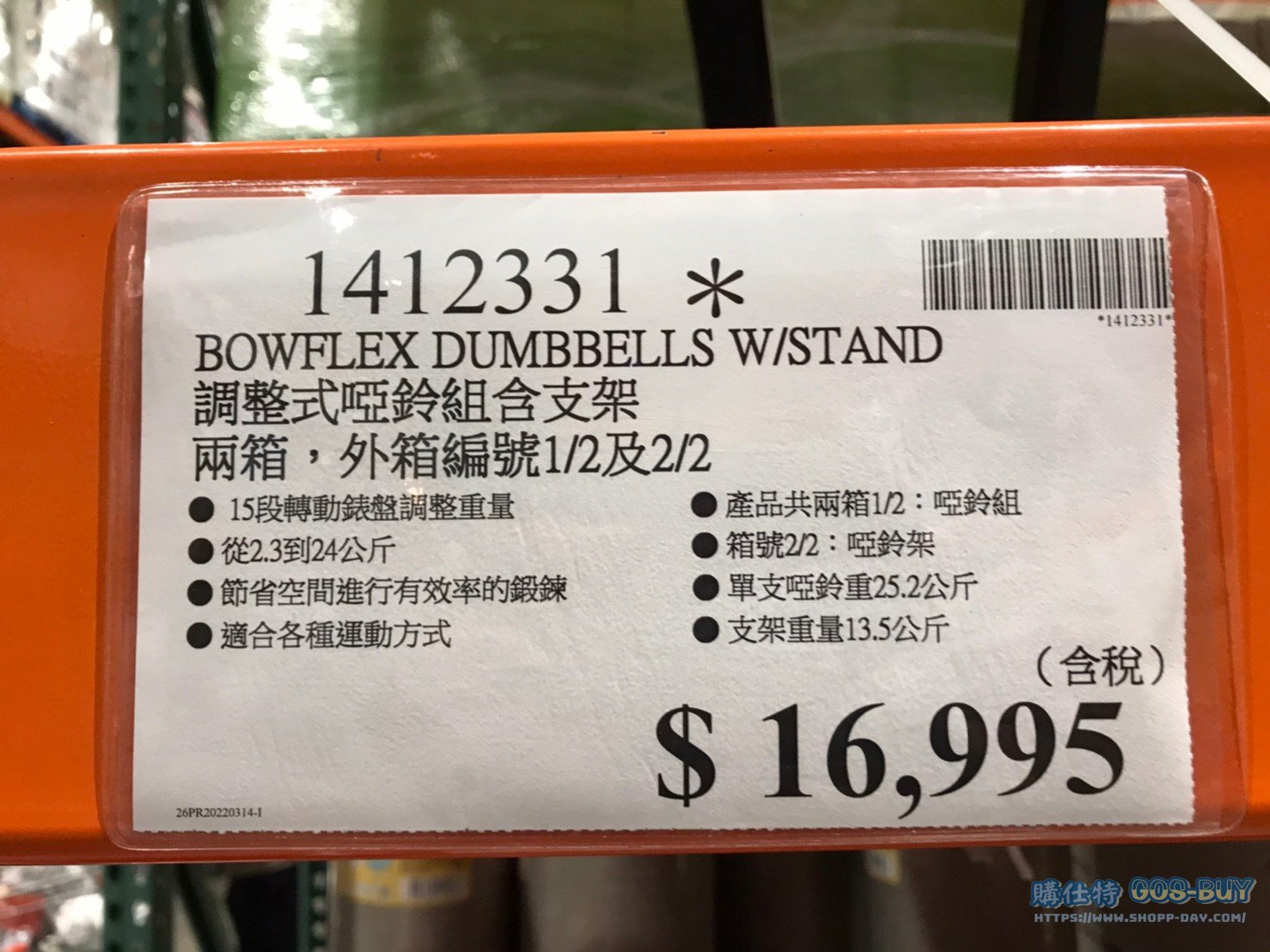 家運動戶外用品健身用品 BOWFLEX 調整式啞鈴組含支架 兩箱外箱編號1/2及 2/2 #1412331 By 網站小編 2022 年 4 月 3 日 214 產品資訊 產品資訊 產品名稱BOWFLEX DUMBBELLS W/STAND 調整式啞鈴組含支架 兩箱外箱編號1/2及 2/2 #1412331價格16995產地N/A包裝規格一組 兩箱 編號1/2:啞鈴組、2/2啞鈴架保存期限N/A備註15段轉動錶盤調整重量從2.3到24公斤節省空間進行有效率的鍛鍊適合各種運動方式產品共兩箱1/2:啞鈴組、2/2啞鈴架單支啞鈴重25.2公斤支架重量13.5公斤→商品問題回報← 相關 標籤健身用品啞鈴 前一篇文章MARCY EXERCISE BIKE 口收納摺疊健身車 NS-654 #119193下一篇文章CHINOOK 美國專利纖維信封式睡袋 高科技保暖纖維 #134118 網站小編https://shopp-day.com 或許你也感興趣 價格優惠資訊 2025好市多客製生日蛋糕價格表 價格優惠資訊 好市多Line社群加入方法 保健品&藥品 新甘木堅胃腸藥顆粒40包 #194496 購仕特-CosBuy 查詢排行 價格優惠資訊 2025好市多客製生日蛋糕價格表 價格優惠資訊 好市多Line社群加入方法 保健品&藥品 新甘木堅胃腸藥顆粒40包 #194496 價格優惠資訊 2025好市多會員護照-春季專案商品一覽表 價格優惠資訊 好市多美國牛肉整箱銷售價格表(2024/5/7) 裝載更多 熱門推薦 戶外用品 12*16′ TARPS 2 PACK 多功能雙色帆布2入#1600091 園藝相關 好市多花束價格 #111590 #136064 #117849 #28013 旅行用品類 SAMSONITE 22+29吋行李箱二入組#140918 戶外用品 COHO 156公升冰桶 適合露營、釣魚 #1382241 汽機車用品 MICHELIN 米其林18吋輪胎PRIMACY SUV+輪胎 235/60 R18 103V #136585 裝載更多