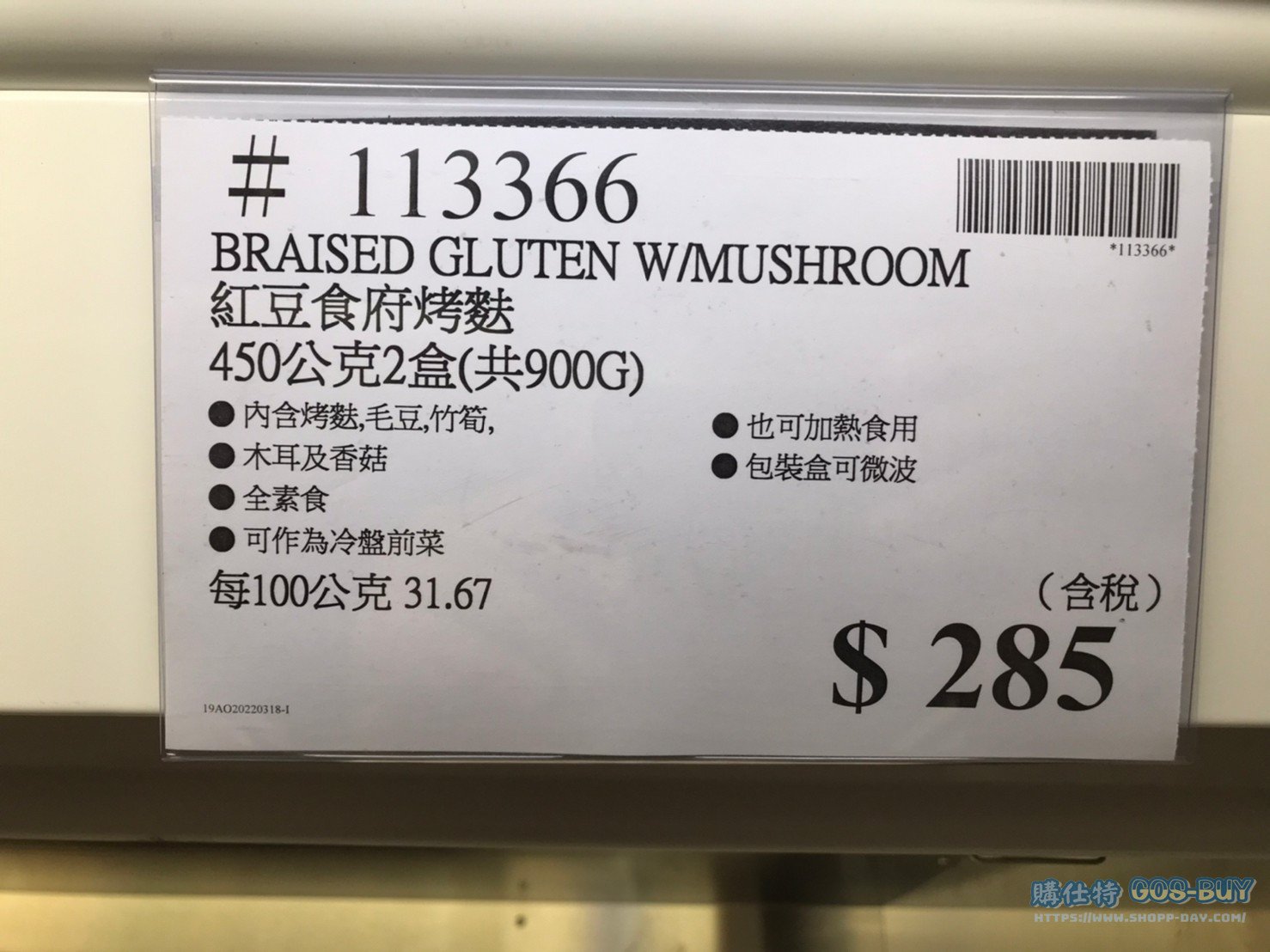 家食品麵包類冷藏食品 紅豆食府烤麩450公克2盒(共900G) #113366 By 網站小編 2022 年 5 月 24 日 159 產品資訊 產品資訊 產品名稱BRAISED GLUTEN W/MUSHROOM 紅豆食府烤麩450公克2盒(共900G) #113366價格285產地台灣包裝規格450公克X2盒保存期限依包裝所示備註內含烤麩、毛豆、竹筍木耳及香菇全素食 可作為冷盤前菜也可加熱食用包裝盒可微波→商品問題回報← 相關 標籤烤麩紅豆食府 前一篇文章戀戀蚵仔寮即食炭烤烏魚子150G #128957下一篇文章澳洲羊梅花里肌燒肉片#48803 網站小編https://shopp-day.com 或許你也感興趣 價格優惠資訊 2025好市多客製生日蛋糕價格表 價格優惠資訊 好市多Line社群加入方法 保健品&藥品 新甘木堅胃腸藥顆粒40包 #194496 購仕特-CosBuy 查詢排行 價格優惠資訊 2025好市多客製生日蛋糕價格表 價格優惠資訊 好市多Line社群加入方法 保健品&藥品 新甘木堅胃腸藥顆粒40包 #194496 價格優惠資訊 2025好市多會員護照-春季專案商品一覽表 價格優惠資訊 好市多美國牛肉整箱銷售價格表(2024/5/7) 裝載更多 熱門推薦 價格優惠資訊 2025好市多客製生日蛋糕價格表 價格優惠資訊 好市多美國牛肉整箱銷售價格表(2024/5/7) 價格優惠資訊 好市多日本和牛價格表 2024.4.29更新 冷藏食品 美國特選無骨牛小排火鍋片#25737 冷藏食品 舊振南英式馬芬米福堡#143387 裝載更多