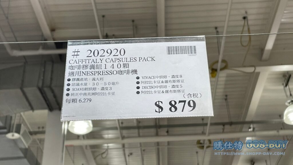 家食品麵包類咖啡製品類 CAFFITALY CAPSULES PACK 咖啡膠囊組 140顆 適用NESPRESSO咖啡機 #202920 By 網站小編 2022 年 1 月 4 日 352 產品資訊 產品資訊 產品名稱CAFFITALY CAPSULES PACK 咖啡膠囊組 140顆 適用NESPRESSO咖啡機 #202920價格879產地義大利包裝規格140顆保存期限依包裝所示備註膠囊產地:義大利建議水量:30-50毫升SOAVE輕烘焙、濃度3純正中南美洲阿拉比卡豆VIVACE中烘焙、濃度8阿拉比卡豆&羅布斯塔豆DECISO中烘焙、濃度5阿拉比卡豆&羅布斯塔豆→商品問題回報← 相關 標籤咖啡膠囊 前一篇文章SMOKED SALMON ROLL 煙燻鮭魚捲 #132450下一篇文章CHRYSMY VANILLA CUP CAKE 客萊斯麥香草籽杯子蛋糕 30公克X12顆 #132973 網站小編https://shopp-day.com[td_block_7 block_template_id="td_block_template_8" custom_title="大家也在找" border_color="#81d742" category_id="_current_tag"] 或許你也感興趣 價格優惠資訊 2025好市多客製生日蛋糕價格表 價格優惠資訊 好市多Line社群加入方法 保健品&藥品 新甘木堅胃腸藥顆粒40包 #194496 購仕特-CosBuy 查詢排行 價格優惠資訊 2025好市多客製生日蛋糕價格表 價格優惠資訊 好市多Line社群加入方法 保健品&藥品 新甘木堅胃腸藥顆粒40包 #194496 價格優惠資訊 2025好市多會員護照-春季專案商品一覽表 價格優惠資訊 好市多美國牛肉整箱銷售價格表(2024/5/7) 裝載更多 熱門推薦 價格優惠資訊 2025好市多客製生日蛋糕價格表 價格優惠資訊 好市多美國牛肉整箱銷售價格表(2024/5/7) 價格優惠資訊 好市多日本和牛價格表 2024.4.29更新 冷藏食品 美國特選無骨牛小排火鍋片#25737 冷藏食品 舊振南英式馬芬米福堡#143387 裝載更多