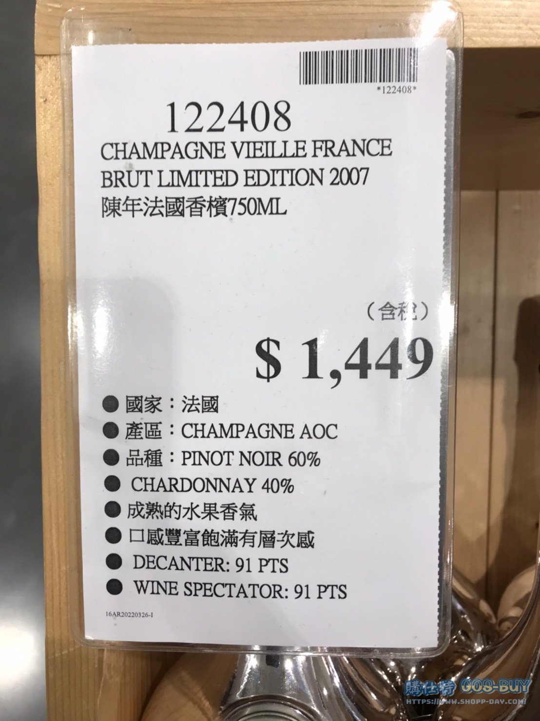 VIEILLE FRANCE 陳年法國香檳750ML #122408