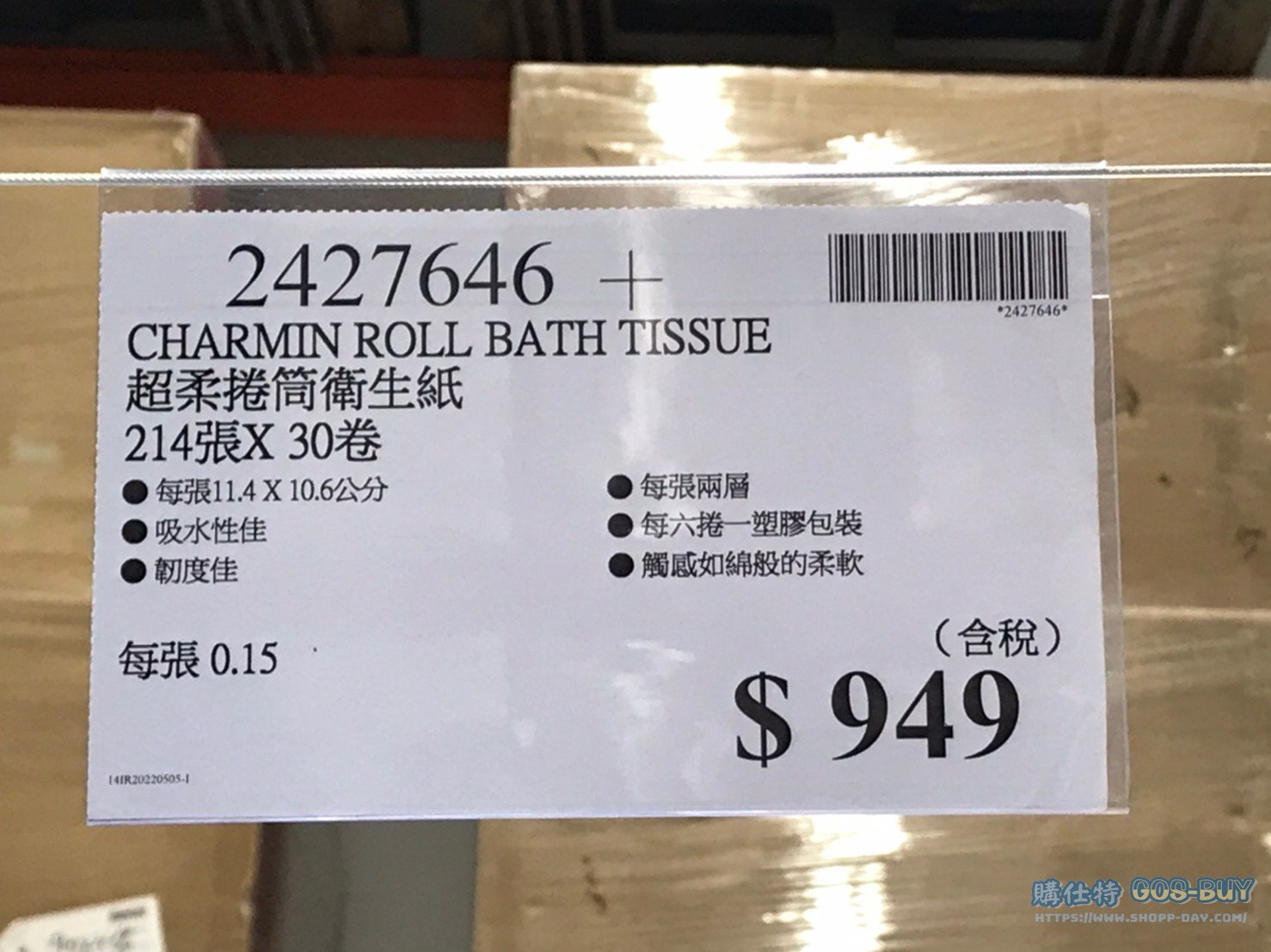 家廚房與居家生活相關 CHARMIN ROLL BATH TISSUE 超柔捲筒衛生紙 214張X30卷 #2427646 By 網站小編 2022 年 5 月 24 日 435 產品資訊 產品資訊 產品名稱CHARMIN ROLL BATH TISSUE 超柔捲筒衛生紙 214張X30卷 #2427646價格949產地美國包裝規格214張X30卷保存期限依包裝所示備註每張11.4X10.6公分吸水性佳 韌度佳每張兩層每六捲一塑膠包裝觸感如棉般的柔軟→商品問題回報← 相關 標籤捲筒衛生紙衛生紙 前一篇文章BANROCK S.夏多內白葡萄酒 750ML #33194下一篇文章US SUNKIST CARA CARA 美國香吉士卡拉卡拉橙3.6公斤 #209764 網站小編https://shopp-day.com 或許你也感興趣 價格優惠資訊 2025好市多客製生日蛋糕價格表 價格優惠資訊 好市多Line社群加入方法 保健品&藥品 新甘木堅胃腸藥顆粒40包 #194496 購仕特-CosBuy 查詢排行 價格優惠資訊 2025好市多客製生日蛋糕價格表 價格優惠資訊 好市多Line社群加入方法 保健品&藥品 新甘木堅胃腸藥顆粒40包 #194496 價格優惠資訊 2025好市多會員護照-春季專案商品一覽表 價格優惠資訊 好市多美國牛肉整箱銷售價格表(2024/5/7) 裝載更多 熱門推薦 廚房與居家生活相關 普拿疼伏冒熱飲20包 #84499 廚房與居家生活相關 DOMAINE DE LA BAUME 波姆酒莊金牌FITOU紅酒 #121971 廚房與居家生活相關 SIMON LI三人座牛皮沙發#1695608 廚房與居家生活相關 TAISHO大正胃腸藥顆粒52包 #126969 廚房與居家生活相關 IDEA NUOVA 摺疊椅 #1393843 裝載更多