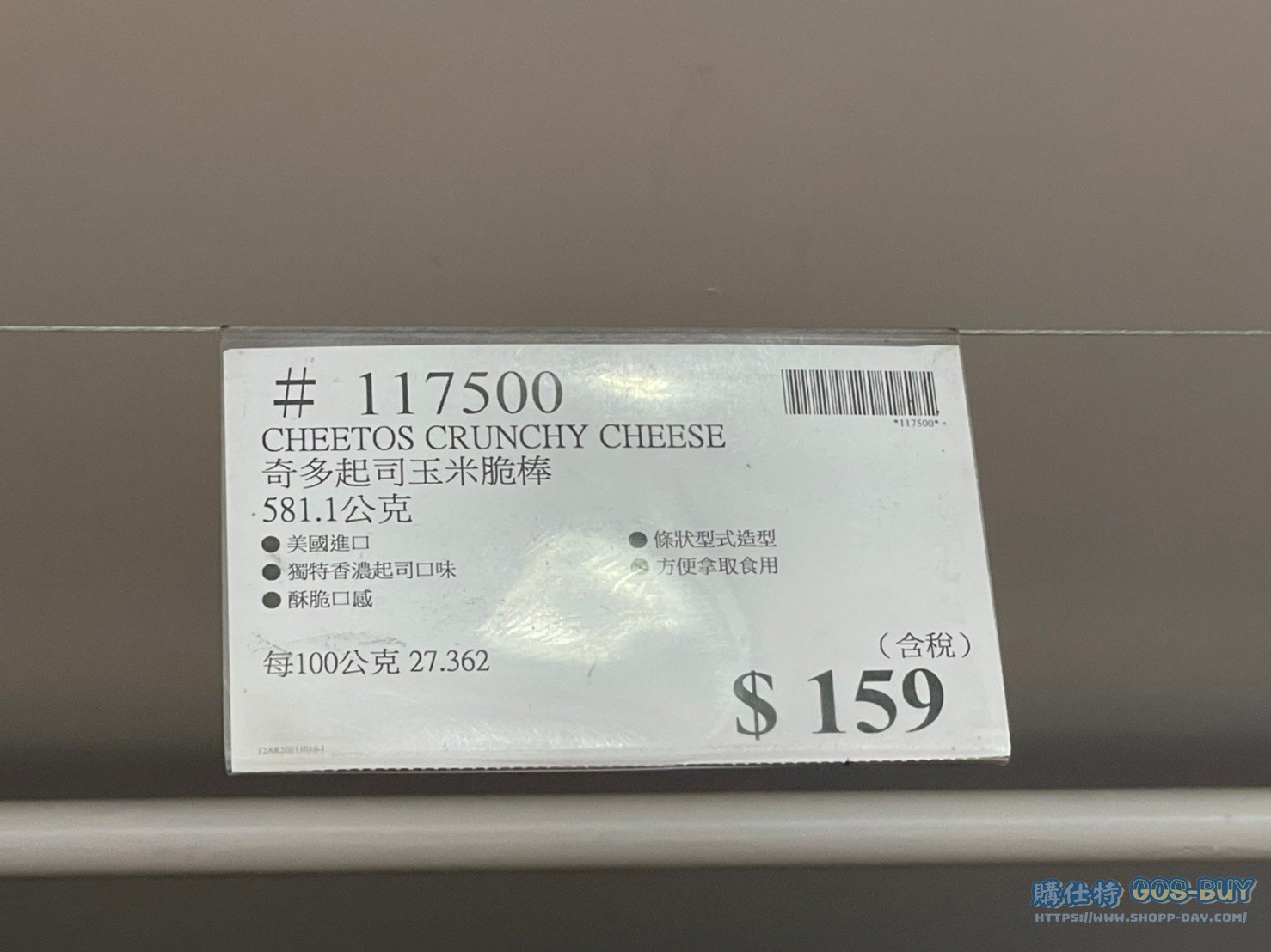 家零食&飲料美國零食 CHEETOS CRUNCHY CHEESE 奇多起司玉米脆棒 581.1公克 #117500 By 網站小編 2022 年 2 月 23 日 295 產品資訊 產品資訊 產品名稱CHEETOS CRUNCHY CHEESE 奇多起司玉米脆棒 581.1公克 #117500價格159產地美國包裝規格一入 (581.1公克)保存期限依包裝所示備註美國進口獨特香濃起司口味酥脆口感條狀型式造型方便拿取食用→商品問題回報← 相關 標籤奇多玉米餅脆棒起司 前一篇文章POCKY百奇濃郁系草莓抹茶雙口味巧克力棒 #132890下一篇文章ADIDAS GOLF MEN’S JACKET 男防風外套 亞洲尺寸:S-XL #132496 網站小編https://shopp-day.com 或許你也感興趣 價格優惠資訊 2025好市多客製生日蛋糕價格表 價格優惠資訊 好市多Line社群加入方法 保健品&藥品 新甘木堅胃腸藥顆粒40包 #194496 購仕特-CosBuy 查詢排行 價格優惠資訊 2025好市多客製生日蛋糕價格表 價格優惠資訊 好市多Line社群加入方法 保健品&藥品 新甘木堅胃腸藥顆粒40包 #194496 價格優惠資訊 2025好市多會員護照-春季專案商品一覽表 價格優惠資訊 好市多美國牛肉整箱銷售價格表(2024/5/7) 裝載更多 熱門推薦 美國零食 科克蘭葡萄乾巧克力#959987 冷藏飲品 BLUE DIAMOND 無糖原味杏仁飲1.89L #129794 西班牙零食 MR.BROWNIE 巧克力布郎尼#153753 泰國零食 A&R牛奶巧克力迷你甜筒餅乾#1744884 比利時零食 科克蘭烈酒與波特酒巧克力 #1351451 裝載更多