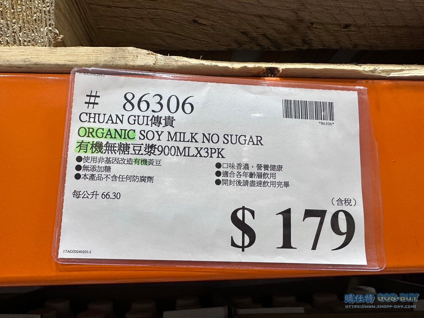 傳貴有機無糖豆漿#86306