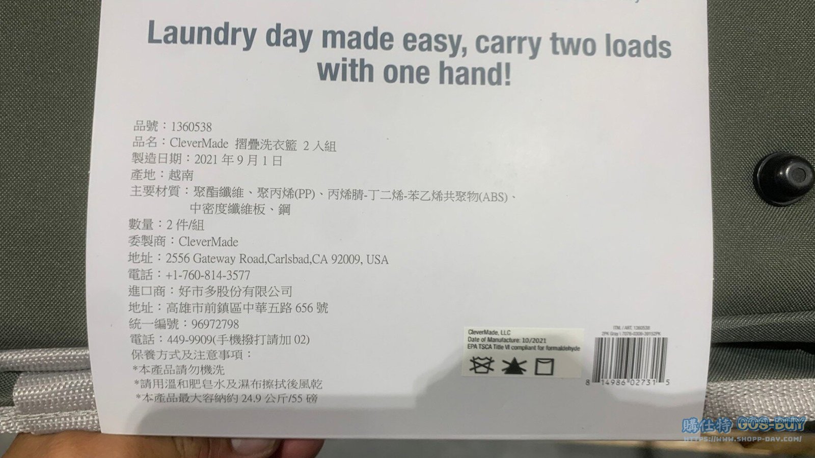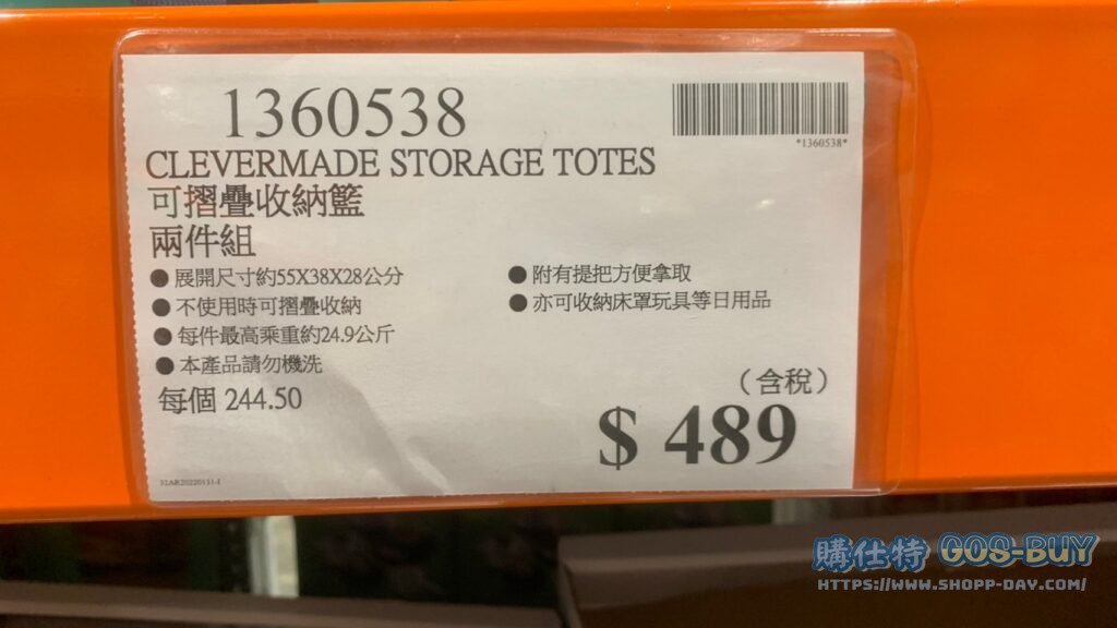 家廚房與居家生活相關 CLEVERMADE STORAGE TOTES 可摺疊收納籃 兩件組 #1360538 By 網站小編 2022 年 3 月 5 日 279 產品資訊 產品資訊 產品名稱CLEVERMADE STORAGE TOTES 可摺疊收納籃 兩件組 #1360538價格489產地越南包裝規格兩件組保存期限8個月備註展開尺寸約55X38X28公分不使用時可摺疊收納每件最高承重約24.9公斤本產品請勿機洗附有提把方便拿取亦可收納床罩玩具等日用品→商品問題回報← 相關 標籤摺疊摺疊藍 前一篇文章SMART DESIGN 摺疊購物車 含可拆卸保冷購物袋 #134299下一篇文章CAMELION 3IN1 FLASHLIGHT CAMELION 三合一手電筒組 #1600333 網站小編https://shopp-day.com 或許你也感興趣 價格優惠資訊 2025好市多客製生日蛋糕價格表 價格優惠資訊 好市多Line社群加入方法 保健品&藥品 新甘木堅胃腸藥顆粒40包 #194496 購仕特-CosBuy 查詢排行 價格優惠資訊 2025好市多客製生日蛋糕價格表 價格優惠資訊 好市多Line社群加入方法 保健品&藥品 新甘木堅胃腸藥顆粒40包 #194496 價格優惠資訊 2025好市多會員護照-春季專案商品一覽表 價格優惠資訊 好市多美國牛肉整箱銷售價格表(2024/5/7) 裝載更多 熱門推薦 廚房與居家生活相關 普拿疼伏冒熱飲20包 #84499 廚房與居家生活相關 DOMAINE DE LA BAUME 波姆酒莊金牌FITOU紅酒 #121971 廚房與居家生活相關 SIMON LI三人座牛皮沙發#1695608 廚房與居家生活相關 TAISHO大正胃腸藥顆粒52包 #126969 廚房與居家生活相關 IDEA NUOVA 摺疊椅 #1393843 裝載更多