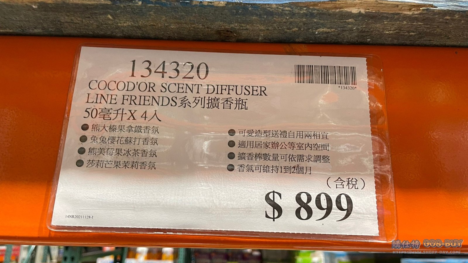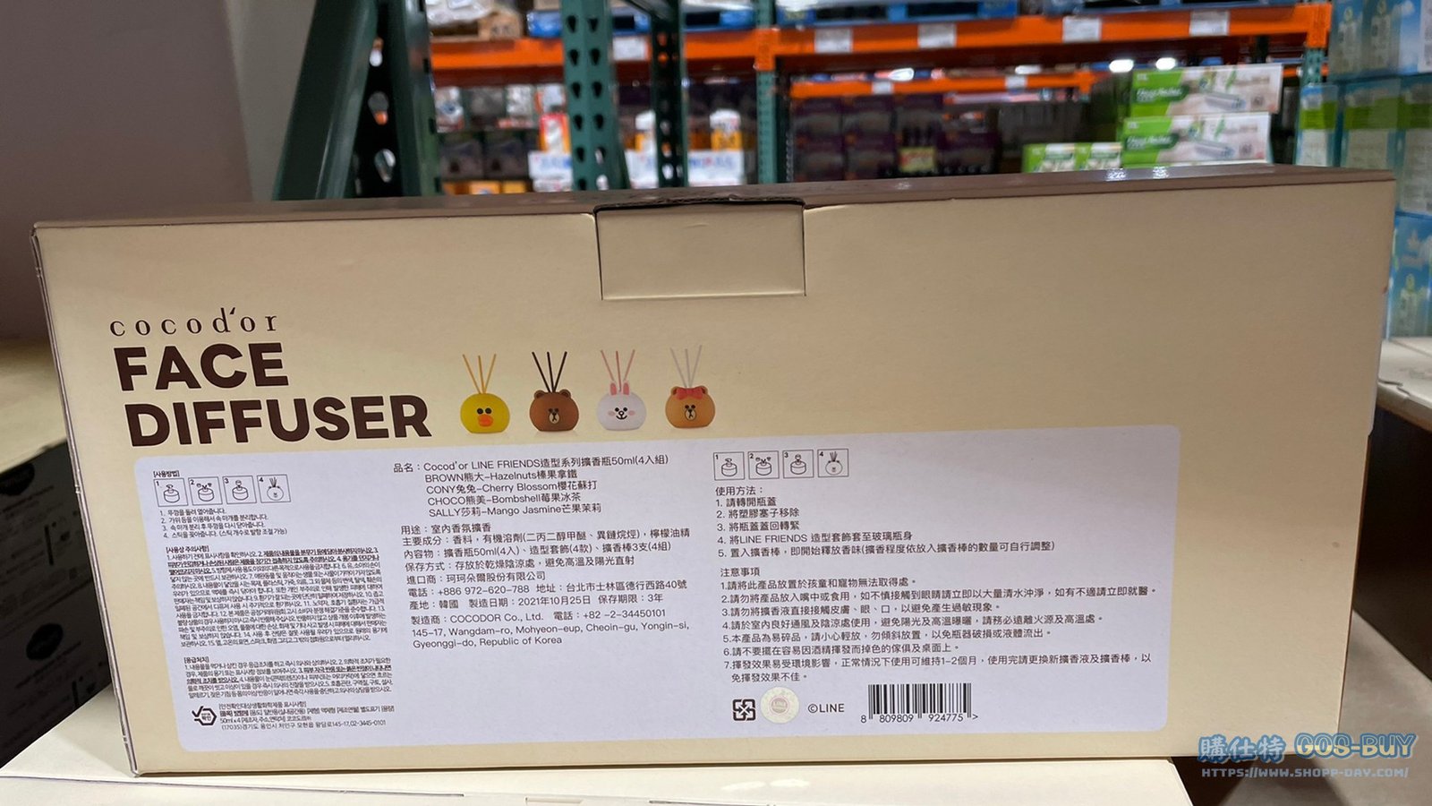 家廚房與居家生活相關 COCOD’OR SCENT DIFFUSER LINE FRIENDS 系列擴香瓶 50毫升X4入 #134320 By 網站小編 2021 年 12 月 22 日 213 產品資訊 產品資訊 產品名稱COCOD’OR SCENT DIFFUSER LINE FRIENDS 系列擴香瓶 50毫升X4入 #134320價格899產地韓國包裝規格50毫升4入(四種各一)熊大榛果拿鐵香氣兔兔櫻花蘇打香氣熊美莓果冰茶香氣莎莉芒果茉莉香氣保存期限依包裝所示備註 →商品問題回報← 相關 標籤LINE兔兔擴香消臭熊大除臭 前一篇文章CHARLES SMITH WINES KUNGFU GIRL RIESLING 白葡萄酒 750ML 2019 #548831下一篇文章TIDE汰漬OXI亮白護色洗衣精4.43公升 #2160440 網站小編https://shopp-day.com 或許你也感興趣 價格優惠資訊 2025好市多客製生日蛋糕價格表 價格優惠資訊 好市多Line社群加入方法 保健品&藥品 新甘木堅胃腸藥顆粒40包 #194496 購仕特-CosBuy 查詢排行 價格優惠資訊 2025好市多客製生日蛋糕價格表 價格優惠資訊 好市多Line社群加入方法 保健品&藥品 新甘木堅胃腸藥顆粒40包 #194496 價格優惠資訊 2025好市多會員護照-春季專案商品一覽表 價格優惠資訊 好市多美國牛肉整箱銷售價格表(2024/5/7) 裝載更多 熱門推薦 廚房與居家生活相關 普拿疼伏冒熱飲20包 #84499 廚房與居家生活相關 DOMAINE DE LA BAUME 波姆酒莊金牌FITOU紅酒 #121971 廚房與居家生活相關 SIMON LI三人座牛皮沙發#1695608 廚房與居家生活相關 TAISHO大正胃腸藥顆粒52包 #126969 廚房與居家生活相關 IDEA NUOVA 摺疊椅 #1393843 裝載更多