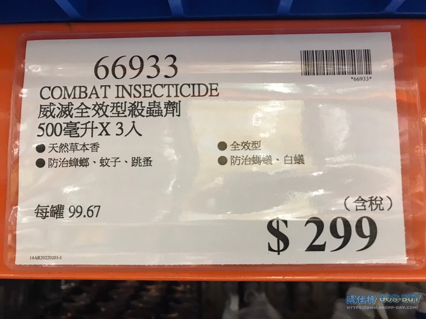 家廚房與居家生活相關 威滅全效型殺蟲劑#66933 By 網站小編 2022 年 3 月 8 日 740 產品資訊 產品資訊 產品名稱COMBAT INSECTICIDE 威滅全效型殺蟲劑 500毫升X3入 #66933價格299產地台灣包裝規格500毫升X3入保存期限依包裝所示備註天然草本香防治蟑螂、蚊子、跳蚤全效型 防治螞蟻、白蟻→商品問題回報← 相關 標籤威滅殺蟲劑 前一篇文章KENDALL-JACKSON 白葡萄酒 #116988下一篇文章3M GLASS CLEANER 魔利玻璃亮光劑 600毫升+3785毫升補充 #134051 網站小編https://shopp-day.com 或許你也感興趣 價格優惠資訊 2025好市多客製生日蛋糕價格表 價格優惠資訊 好市多Line社群加入方法 保健品&藥品 新甘木堅胃腸藥顆粒40包 #194496 購仕特-CosBuy 查詢排行 價格優惠資訊 2025好市多客製生日蛋糕價格表 價格優惠資訊 好市多Line社群加入方法 保健品&藥品 新甘木堅胃腸藥顆粒40包 #194496 價格優惠資訊 2025好市多會員護照-春季專案商品一覽表 價格優惠資訊 好市多美國牛肉整箱銷售價格表(2024/5/7) 裝載更多 熱門推薦 廚房與居家生活相關 普拿疼伏冒熱飲20包 #84499 廚房與居家生活相關 DOMAINE DE LA BAUME 波姆酒莊金牌FITOU紅酒 #121971 廚房與居家生活相關 SIMON LI三人座牛皮沙發#1695608 廚房與居家生活相關 TAISHO大正胃腸藥顆粒52包 #126969 廚房與居家生活相關 IDEA NUOVA 摺疊椅 #1393843 裝載更多
