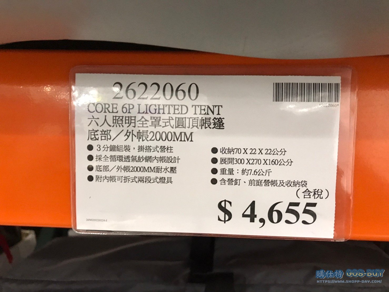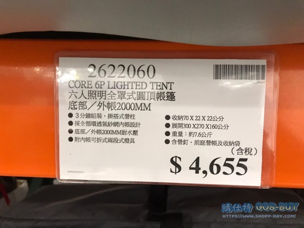 CORE 六人照明全罩式圓頂帳篷 底部/外帳2000MM #2622060