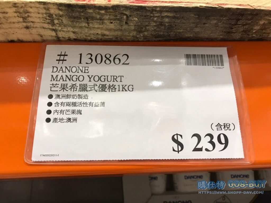 家食品麵包類乳酪 DANONE MANGO YOGURT 芒果希臘式優格1KG #130862 By 網站小編 2022 年 3 月 14 日 365 產品資訊 產品資訊 產品名稱DANONE MANGO YOGURT 芒果希臘式優格1KG #130862價格239產地澳洲包裝規格1KG保存期限50天備註澳洲鮮奶製造含有兩種活性有益菌內有芒果塊產地:澳洲→商品問題回報← 相關 標籤優格希臘式優格芒果 前一篇文章石安牧場杏仁豆腐#125978下一篇文章純在芭樂檸檬綠茶 1.2L X2PK #131330 網站小編https://shopp-day.com[td_block_7 block_template_id="td_block_template_8" custom_title="大家也在找" border_color="#81d742" category_id="_current_tag"] 或許你也感興趣 價格優惠資訊 2025好市多客製生日蛋糕價格表 價格優惠資訊 好市多Line社群加入方法 保健品&藥品 新甘木堅胃腸藥顆粒40包 #194496 購仕特-CosBuy 查詢排行 價格優惠資訊 2025好市多客製生日蛋糕價格表 價格優惠資訊 好市多Line社群加入方法 保健品&藥品 新甘木堅胃腸藥顆粒40包 #194496 價格優惠資訊 2025好市多會員護照-春季專案商品一覽表 價格優惠資訊 好市多美國牛肉整箱銷售價格表(2024/5/7) 裝載更多 熱門推薦 價格優惠資訊 2025好市多客製生日蛋糕價格表 價格優惠資訊 好市多美國牛肉整箱銷售價格表(2024/5/7) 價格優惠資訊 好市多日本和牛價格表 2024.4.29更新 冷藏食品 美國特選無骨牛小排火鍋片#25737 冷藏食品 舊振南英式馬芬米福堡#143387 裝載更多