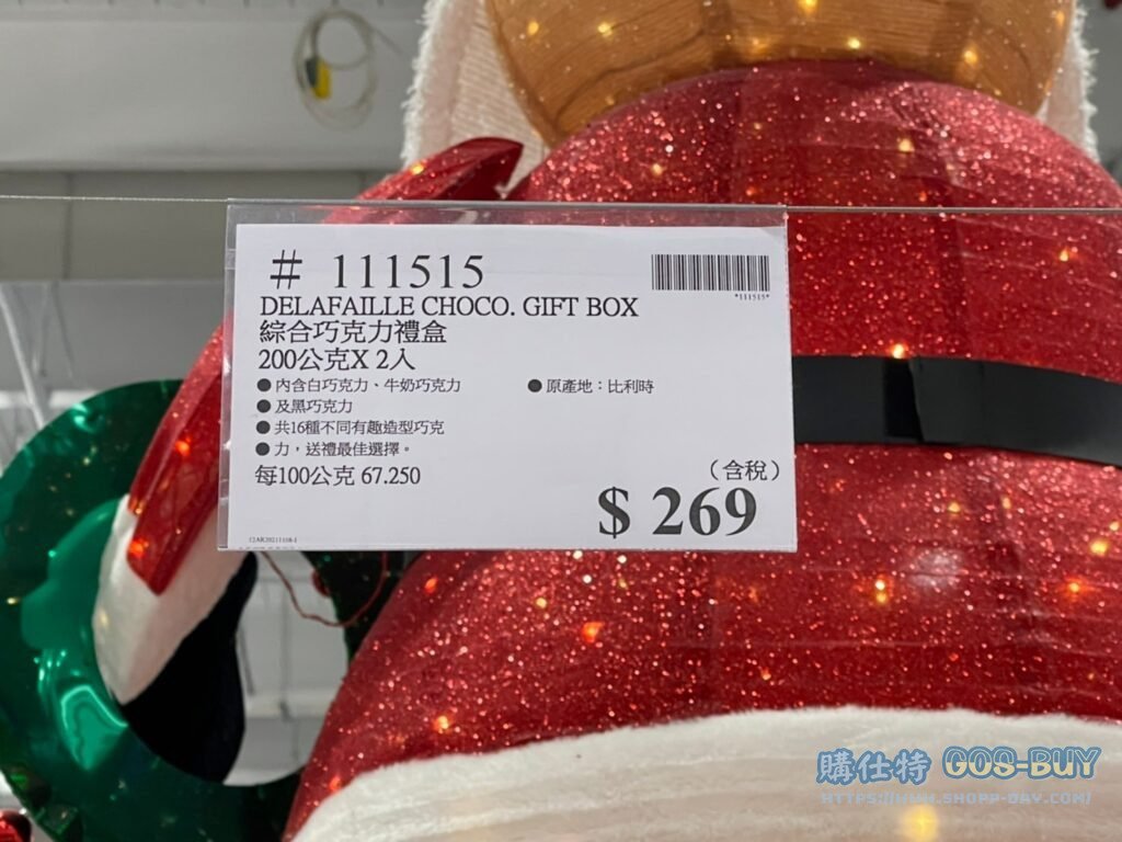 家零食&飲料比利時零食 DELAFAILLE CHOCO. GIFT BOX 綜合巧克力禮盒 200公克X2入 #111515 By 網站小編 2022 年 1 月 30 日 371 產品資訊 產品資訊 產品名稱DELAFAILLE CHOCO. GIFT BOX 綜合巧克力禮盒 200公克X2入 #111515價格269產地比利時包裝規格200公克X2入保存期限依包裝所示備註內含白巧克力、牛奶巧克力及黑巧克力共16顆不同有趣造型巧克力送禮最佳選擇 →商品問題回報← 相關 標籤巧克力白巧克力黑巧克力 前一篇文章科克蘭比利時巧克力禮盒 #869351下一篇文章GUYLIAN BELGIAN MASTER’S SELECTION 巧克力大師精選350公克 #124362 網站小編https://shopp-day.com 或許你也感興趣 價格優惠資訊 2025好市多客製生日蛋糕價格表 價格優惠資訊 好市多Line社群加入方法 保健品&藥品 新甘木堅胃腸藥顆粒40包 #194496 購仕特-CosBuy 查詢排行 價格優惠資訊 2025好市多客製生日蛋糕價格表 價格優惠資訊 好市多Line社群加入方法 保健品&藥品 新甘木堅胃腸藥顆粒40包 #194496 價格優惠資訊 2025好市多會員護照-春季專案商品一覽表 價格優惠資訊 好市多美國牛肉整箱銷售價格表(2024/5/7) 裝載更多 熱門推薦 美國零食 科克蘭葡萄乾巧克力#959987 冷藏飲品 BLUE DIAMOND 無糖原味杏仁飲1.89L #129794 西班牙零食 MR.BROWNIE 巧克力布郎尼#153753 泰國零食 A&R牛奶巧克力迷你甜筒餅乾#1744884 比利時零食 科克蘭烈酒與波特酒巧克力 #1351451 裝載更多