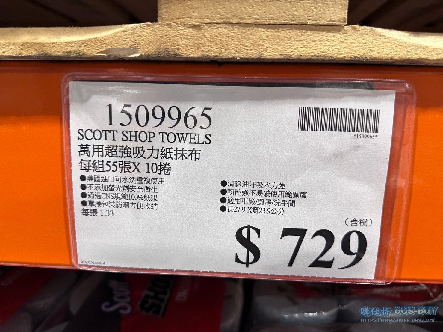 家廚房與居家生活相關 SCOTT萬用超強吸力紙抹布#1509965 By 網站小編 2022 年 3 月 22 日 219 產品資訊 產品資訊 產品名稱SCOTT SHOP TOWELS 萬用超強吸力紙抹布 每組55張 X 10捲 #1509965價格729產地美國包裝規格55張X10捲保存期限五年備註美國進口可水洗重複使用不添加螢光劑安全衛生通過CNS規範100%紙漿單捲包裝防潮方便收納清除油汙吸水力強韌性強不易破使用範圍廣適用車廠/廚房/洗手間長27.9X寬23.9公分2024/2/22查價價格由659漲價為729漲價70元→商品問題回報← 相關 標籤SCOTT抹布紙抹布 前一篇文章ARTIKA LED 吸頂燈 #1500227下一篇文章BATTERY TENDER STARTER 救車無線充電行動電源 具QI無線電功能 #126542 網站小編https://shopp-day.com 或許你也感興趣 價格優惠資訊 2025好市多客製生日蛋糕價格表 價格優惠資訊 好市多Line社群加入方法 保健品&藥品 新甘木堅胃腸藥顆粒40包 #194496 購仕特-CosBuy 查詢排行 價格優惠資訊 2025好市多客製生日蛋糕價格表 價格優惠資訊 好市多Line社群加入方法 保健品&藥品 新甘木堅胃腸藥顆粒40包 #194496 價格優惠資訊 2025好市多會員護照-春季專案商品一覽表 價格優惠資訊 好市多美國牛肉整箱銷售價格表(2024/5/7) 裝載更多 熱門推薦 廚房與居家生活相關 普拿疼伏冒熱飲20包 #84499 廚房與居家生活相關 DOMAINE DE LA BAUME 波姆酒莊金牌FITOU紅酒 #121971 廚房與居家生活相關 SIMON LI三人座牛皮沙發#1695608 廚房與居家生活相關 TAISHO大正胃腸藥顆粒52包 #126969 廚房與居家生活相關 IDEA NUOVA 摺疊椅 #1393843 裝載更多
