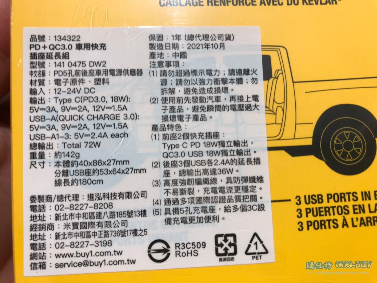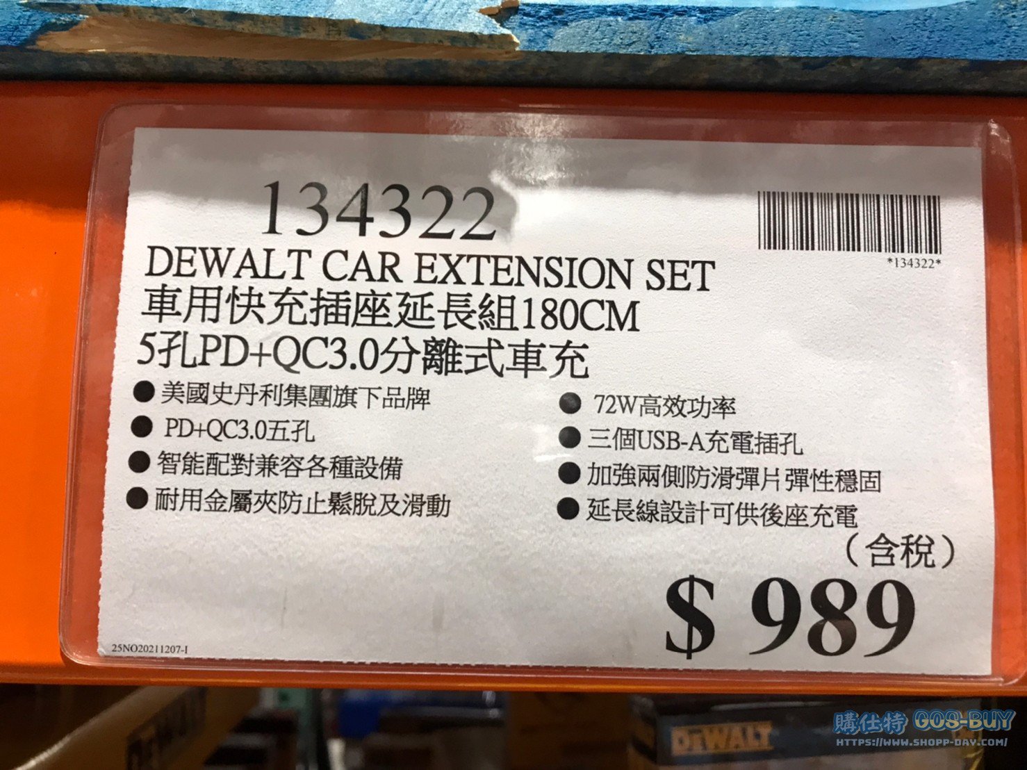 DEWALT CAR EXTENSION SET 車用快充插座延長組 #134322