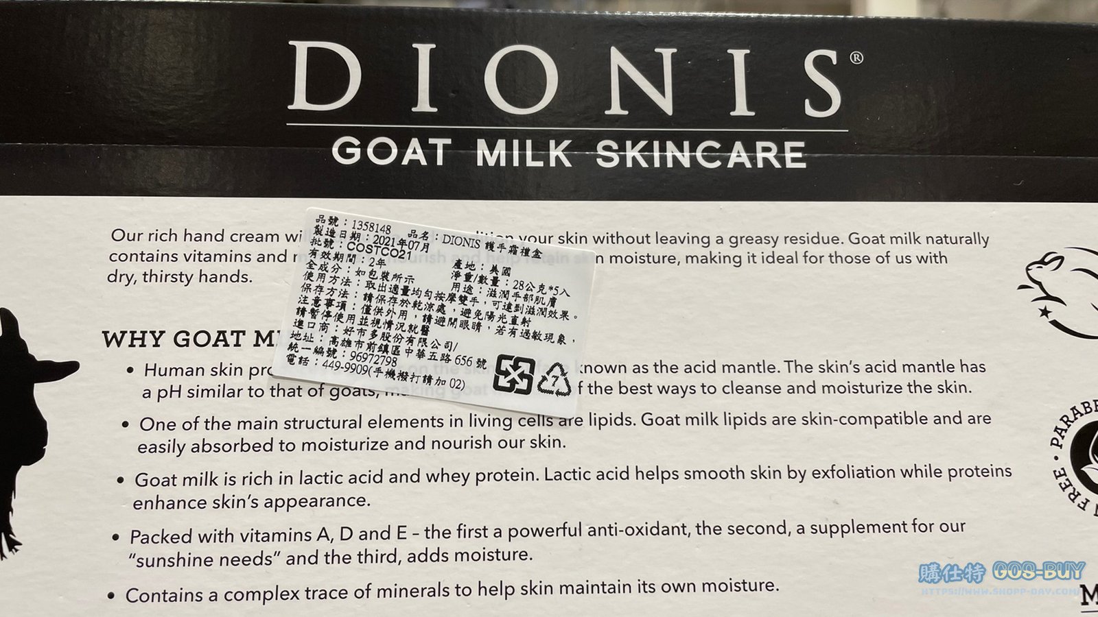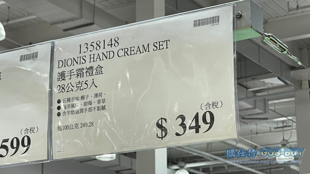 家廚房與居家生活相關保養品 DIONIS HAND CREAM SET 護手霜禮盒 28公克5入 #1358148 By 網站小編 2021 年 12 月 26 日 383 產品資訊 產品資訊 產品名稱DIONIS HAND CREAM SET 護手霜禮盒 28公克5入 #1358148價格349產地美國包裝規格28公克5入 五種風味椰子、薄荷、海洋風味、甜莓、香草保存期限2年備註 →商品問題回報← 相關 標籤乳液滋潤羊奶護手霜 前一篇文章健司辻利煎茶茶點禮盒組 #131063下一篇文章萊萃美 葉黃素20毫克複合軟膠囊150粒#235354 網站小編https://shopp-day.com 或許你也感興趣 價格優惠資訊 2025好市多客製生日蛋糕價格表 價格優惠資訊 好市多Line社群加入方法 保健品&藥品 新甘木堅胃腸藥顆粒40包 #194496 購仕特-CosBuy 查詢排行 價格優惠資訊 2025好市多客製生日蛋糕價格表 價格優惠資訊 好市多Line社群加入方法 保健品&藥品 新甘木堅胃腸藥顆粒40包 #194496 價格優惠資訊 2025好市多會員護照-春季專案商品一覽表 價格優惠資訊 好市多美國牛肉整箱銷售價格表(2024/5/7) 裝載更多 熱門推薦 廚房與居家生活相關 普拿疼伏冒熱飲20包 #84499 廚房與居家生活相關 DOMAINE DE LA BAUME 波姆酒莊金牌FITOU紅酒 #121971 廚房與居家生活相關 SIMON LI三人座牛皮沙發#1695608 廚房與居家生活相關 TAISHO大正胃腸藥顆粒52包 #126969 廚房與居家生活相關 IDEA NUOVA 摺疊椅 #1393843 裝載更多