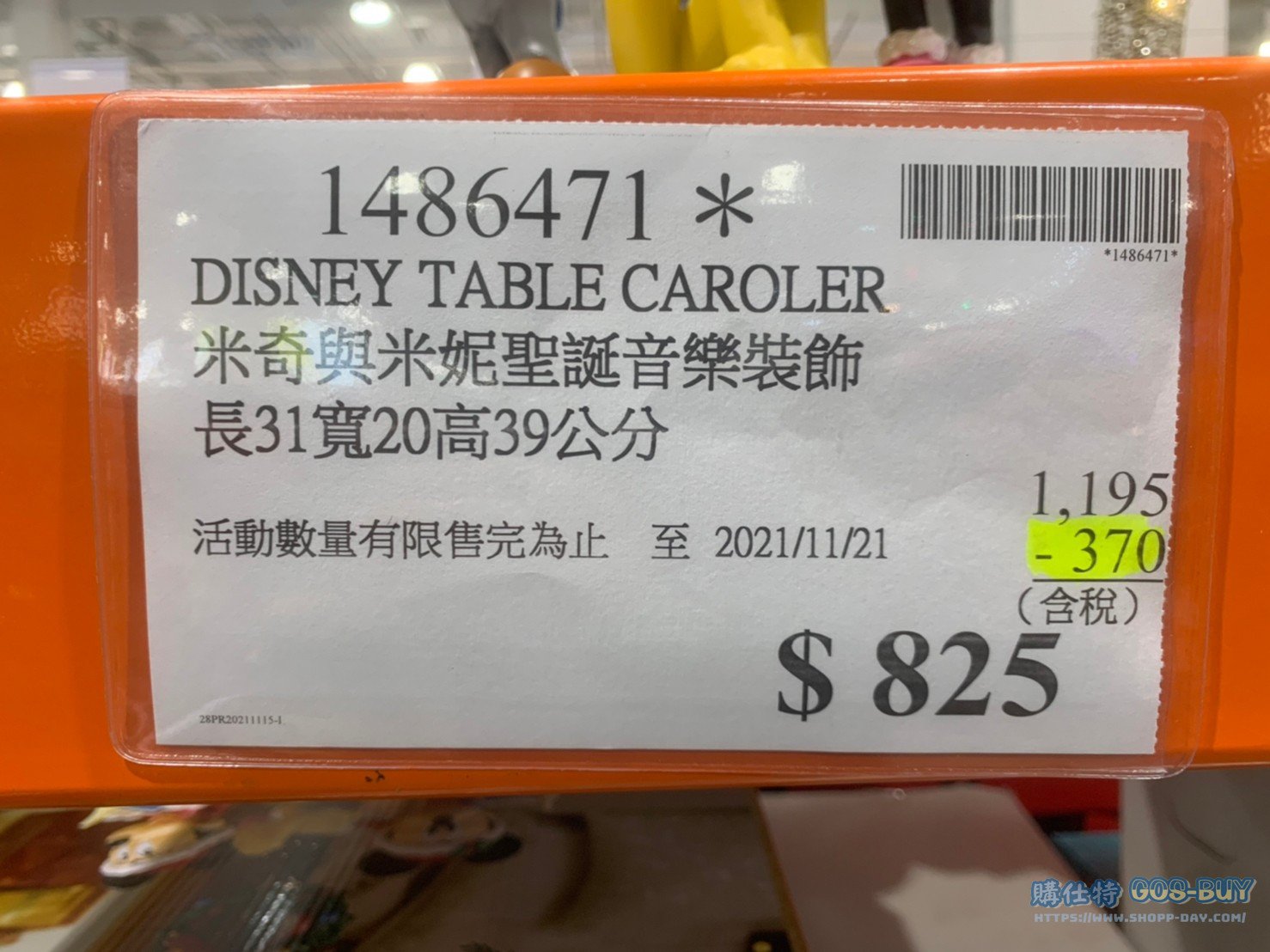 家玩具應景裝飾類應景裝飾 DISNEY TABLE CAROLER 米奇與米妮聖誕音樂裝飾 長31X寬20X高39公分 #1486471 By 網站小編 2022 年 2 月 28 日 911 產品資訊 產品資訊 產品名稱DISNEY TABLE CAROLER 米奇與米妮聖誕音樂裝飾 長31 寬20 高39公分 #1486471價格1195產地中國包裝規格 一入(長31 寬20 高39 公分)保存期限N/A備註DISNEY經典動畫角色可播放8首聖誕歌曲中央路燈可亮起可定時亮燈6HR關燈18HR需3顆三號電池(電池不內附)僅適用於室內裝飾本產品非玩具→商品問題回報← 相關 標籤DISNEY米奇米妮耶誕節聖誕節迪士尼 前一篇文章REINDEER FAMILY LED麋鹿家庭裝飾 3入組 #1487737下一篇文章CHRISTMAS DELUXE CAROUSEL 華麗旋轉木馬裝飾 長42寬42高43公分 #2006179 網站小編https://shopp-day.com 或許你也感興趣 價格優惠資訊 2025好市多客製生日蛋糕價格表 價格優惠資訊 好市多Line社群加入方法 保健品&藥品 新甘木堅胃腸藥顆粒40包 #194496 購仕特-CosBuy 查詢排行 價格優惠資訊 2025好市多客製生日蛋糕價格表 價格優惠資訊 好市多Line社群加入方法 保健品&藥品 新甘木堅胃腸藥顆粒40包 #194496 價格優惠資訊 2025好市多會員護照-春季專案商品一覽表 價格優惠資訊 好市多美國牛肉整箱銷售價格表(2024/5/7) 裝載更多 熱門推薦 小孩玩具 LILFANT 雙面遊戲地墊 韓國製 #218570 應景裝飾 8FT LED NUTCRACKER 8呎LED胡桃鉗士兵 長65寬65高244公分 #1486943 應景裝飾 J’ADORE花園多肉治癒系列#139640 健身用品 PARKLON DUAL CUSHION MAT 雙層遊戲軟墊 #635029 小孩玩具 MEGA CITY SERVICE TEAM 高手城市服務團隊39件組 #1113945 裝載更多
