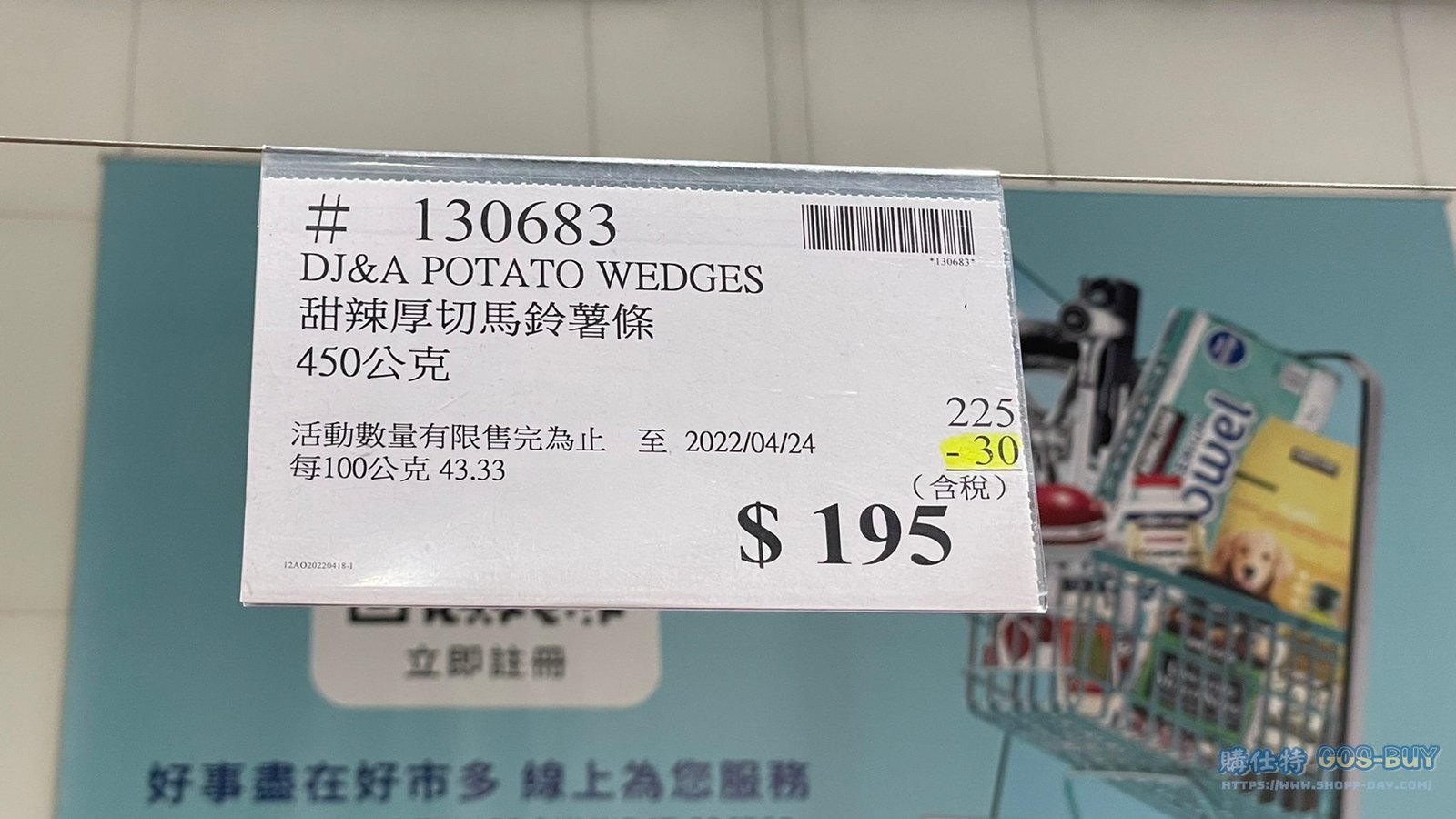 家零食&飲料澳洲零食 DJ&A POTATO WEDGES 甜辣厚切馬鈴薯條 450公克 #130683 By 網站小編 2022 年 5 月 12 日 194 產品資訊 產品資訊 產品名稱DJ&A POTATO WEDGES 甜辣厚切馬鈴薯條 450公克 #130683價格225產地澳洲包裝規格450公克保存期限依包裝所示備註採用低溫油炸保留馬鈴薯原味無添加人工香料、防腐劑使用非基改馬鈴薯原產地:澳洲→商品問題回報← 相關 標籤厚切馬鈴薯馬鈴薯條 前一篇文章客家鹹豬肉 #76173下一篇文章NATURE VALLEY天然谷綜合燕麥棒 #109665 網站小編https://shopp-day.com 或許你也感興趣 價格優惠資訊 2025好市多客製生日蛋糕價格表 價格優惠資訊 好市多Line社群加入方法 保健品&藥品 新甘木堅胃腸藥顆粒40包 #194496 購仕特-CosBuy 查詢排行 價格優惠資訊 2025好市多客製生日蛋糕價格表 價格優惠資訊 好市多Line社群加入方法 保健品&藥品 新甘木堅胃腸藥顆粒40包 #194496 價格優惠資訊 2025好市多會員護照-春季專案商品一覽表 價格優惠資訊 好市多美國牛肉整箱銷售價格表(2024/5/7) 裝載更多 熱門推薦 美國零食 科克蘭葡萄乾巧克力#959987 冷藏飲品 BLUE DIAMOND 無糖原味杏仁飲1.89L #129794 西班牙零食 MR.BROWNIE 巧克力布郎尼#153753 泰國零食 A&R牛奶巧克力迷你甜筒餅乾#1744884 比利時零食 科克蘭烈酒與波特酒巧克力 #1351451 裝載更多