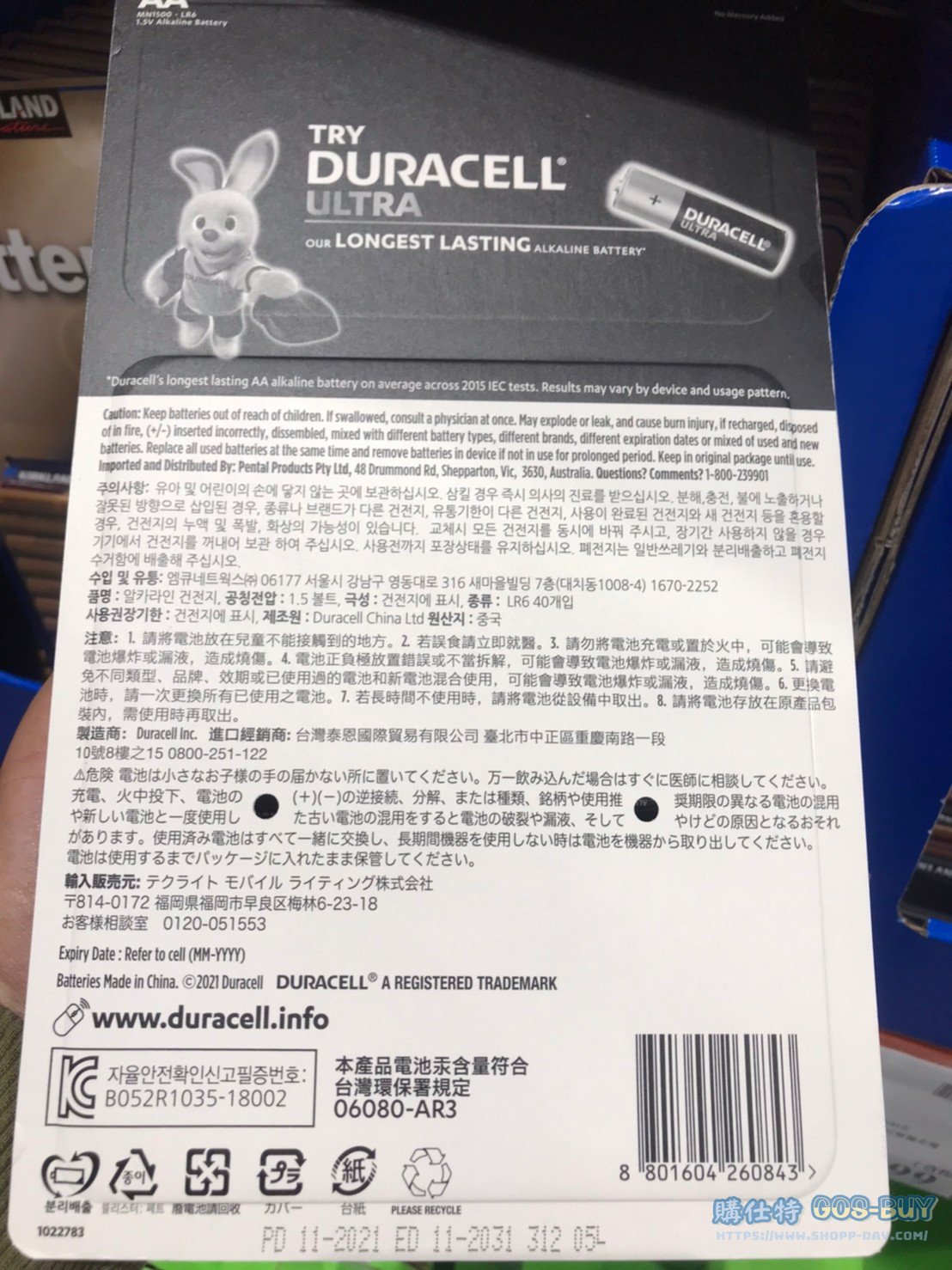 家電子產品 DURACELL金頂鹼性電池三號電池40顆#1012891 By 網站小編 2022 年 4 月 4 日 184 產品資訊 產品資訊 產品名稱 DURACELL AA BATTERY 40CT 金頂鹼性電池三號電池40顆 #1012891 價格 415 產地 中國 包裝規格 40顆入 保存期限 依包裝所示 備註 製程通過ISO 9001認證通過SGS國際認證通過環保署電池汞檢驗創新內組技術提高電池容量新舊電池請勿混合使用電器長期不使用請取出電池安裝前請確認正負極位置不含水銀2022/2/3查價價格由499漲價為435漲價36元2024/2/9查價價格由435降價為415降價20元 →商品問題回報← 相關 標籤三號電池金頂電池鹼性電池 前一篇文章MERIDLIFE 寵物綜合維他命700公克+葡萄糖胺+軟骨素 #996064下一篇文章DURACELL金頂鹼性電池四號號電池40顆#1012885 網站小編https://shopp-day.com 或許你也感興趣 價格優惠資訊 2025好市多客製生日蛋糕價格表 價格優惠資訊 好市多Line社群加入方法 保健品&藥品 新甘木堅胃腸藥顆粒40包 #194496 購仕特-CosBuy 查詢排行 價格優惠資訊 2025好市多客製生日蛋糕價格表 價格優惠資訊 好市多Line社群加入方法 保健品&藥品 新甘木堅胃腸藥顆粒40包 #194496 價格優惠資訊 2025好市多會員護照-春季專案商品一覽表 價格優惠資訊 好市多美國牛肉整箱銷售價格表(2024/5/7) 裝載更多 熱門推薦 價格優惠資訊 Costco好市多 iphone14 Pro ProMax 價格表 價格優惠資訊 Costco 好市多 Apple Watch 2022年版價格表 家庭劇院 BOSE兩件式家庭劇院組 #137039 螢幕 MSI 27吋IPS電競螢幕FHD平面/144HZ OPTIX G271 #132273 其他電子產品 MIPRO 手提藍牙無線擴音機MA-708 #118489 裝載更多