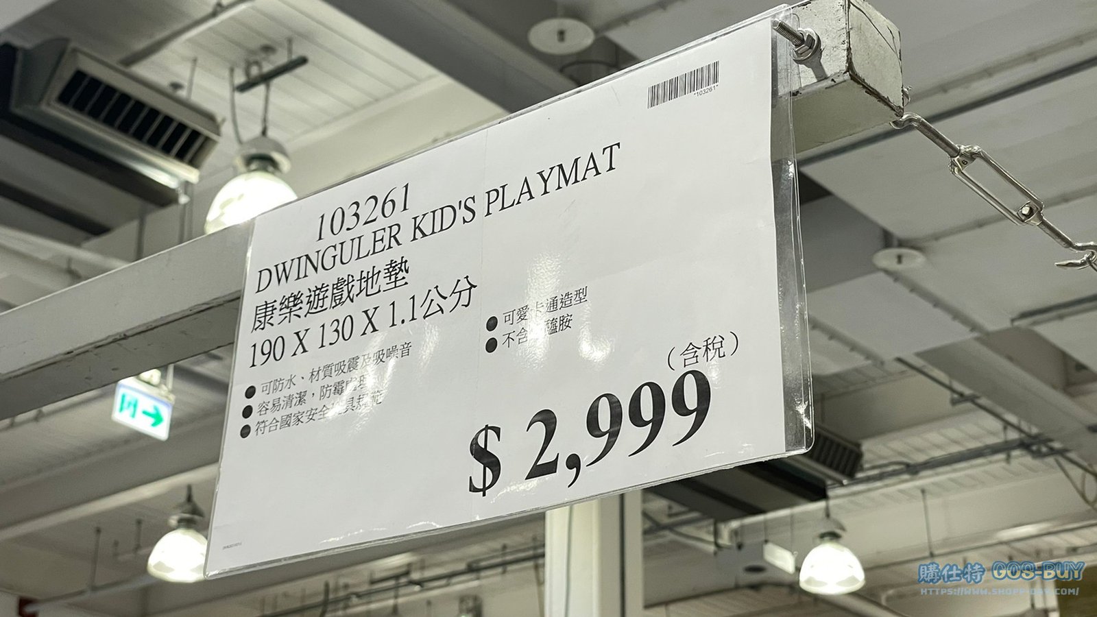 家玩具應景裝飾類小孩玩具 DWINGULER KID’S PLAYMAT 康樂遊戲地墊 #103261 By 網站小編 2022 年 5 月 1 日 290 產品資訊 產品資訊 產品名稱DWINGULER KID’S PLAYMAT 康樂遊戲地墊 190 X 130 X 1.1公分 #103261價格2999產地韓國包裝規格 一入(規格:190 X 130 X 1.1公分)保存期限N/A備註可防水、材質吸震及吸噪音容易清潔,防霉處理符合國家安全玩具規範可愛卡通造型不含甲醯胺→商品問題回報← 相關 標籤兒童地墊 前一篇文章ENSURE PEDIASURE COMPLETE 亞培小安素均衡營養配方 #306137下一篇文章MINIONS REAL LIVE STUART 小小兵互動機器人 #1536137 網站小編https://shopp-day.com 或許你也感興趣 價格優惠資訊 2025好市多客製生日蛋糕價格表 價格優惠資訊 好市多Line社群加入方法 保健品&藥品 新甘木堅胃腸藥顆粒40包 #194496 購仕特-CosBuy 查詢排行 價格優惠資訊 2025好市多客製生日蛋糕價格表 價格優惠資訊 好市多Line社群加入方法 保健品&藥品 新甘木堅胃腸藥顆粒40包 #194496 價格優惠資訊 2025好市多會員護照-春季專案商品一覽表 價格優惠資訊 好市多美國牛肉整箱銷售價格表(2024/5/7) 裝載更多 熱門推薦 小孩玩具 LILFANT 雙面遊戲地墊 韓國製 #218570 應景裝飾 8FT LED NUTCRACKER 8呎LED胡桃鉗士兵 長65寬65高244公分 #1486943 應景裝飾 J’ADORE花園多肉治癒系列#139640 應景裝飾 DISNEY TABLE CAROLER 米奇與米妮聖誕音樂裝飾 長31X寬20X高39公分 #1486471 健身用品 PARKLON DUAL CUSHION MAT 雙層遊戲軟墊 #635029 裝載更多