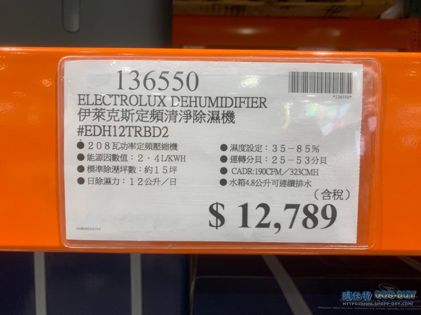 | 產品名稱 | ELECTROLUX DEHUMIDIFIER 伊萊克斯定頻清淨除濕機 #EDH12TRBD2 #136550 |