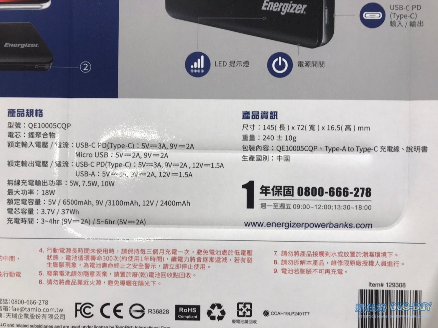 家電子產品行動電源 ENERGIZER POWER BANK 10W 勁量無限快充行動電源 #129308 By 網站小編 2022 年 5 月 25 日 449 產品資訊 產品資訊 產品名稱ENERGIZER POWER BANK 10W 勁量 無限快充行動電源 最高額定容量:6500MAH #129308價格799產地中國包裝規格一入(額定容量:6500MAH)保存期限保固一年備註通過無線充電標準QI認證單孔最大輸出功率達18WUSB-A 快充輸出USB-C PD輸出/輸入支援QC3.0 一年保固→商品問題回報← 相關 標籤勁量無線充電行動電源 前一篇文章摺疊式老花眼鏡矯正鏡片(未滅菌) 兩入組 #117536下一篇文章WHIRLPOOL 惠而浦直立式冷凍櫃190L #136403 網站小編https://shopp-day.com 或許你也感興趣 價格優惠資訊 2025好市多客製生日蛋糕價格表 價格優惠資訊 好市多Line社群加入方法 保健品&藥品 新甘木堅胃腸藥顆粒40包 #194496 購仕特-CosBuy 查詢排行 價格優惠資訊 2025好市多客製生日蛋糕價格表 價格優惠資訊 好市多Line社群加入方法 保健品&藥品 新甘木堅胃腸藥顆粒40包 #194496 價格優惠資訊 2025好市多會員護照-春季專案商品一覽表 價格優惠資訊 好市多美國牛肉整箱銷售價格表(2024/5/7) 裝載更多 熱門推薦 價格優惠資訊 Costco好市多 iphone14 Pro ProMax 價格表 價格優惠資訊 Costco 好市多 Apple Watch 2022年版價格表 家庭劇院 BOSE兩件式家庭劇院組 #137039 螢幕 MSI 27吋IPS電競螢幕FHD平面/144HZ OPTIX G271 #132273 其他電子產品 MIPRO 手提藍牙無線擴音機MA-708 #118489 裝載更多