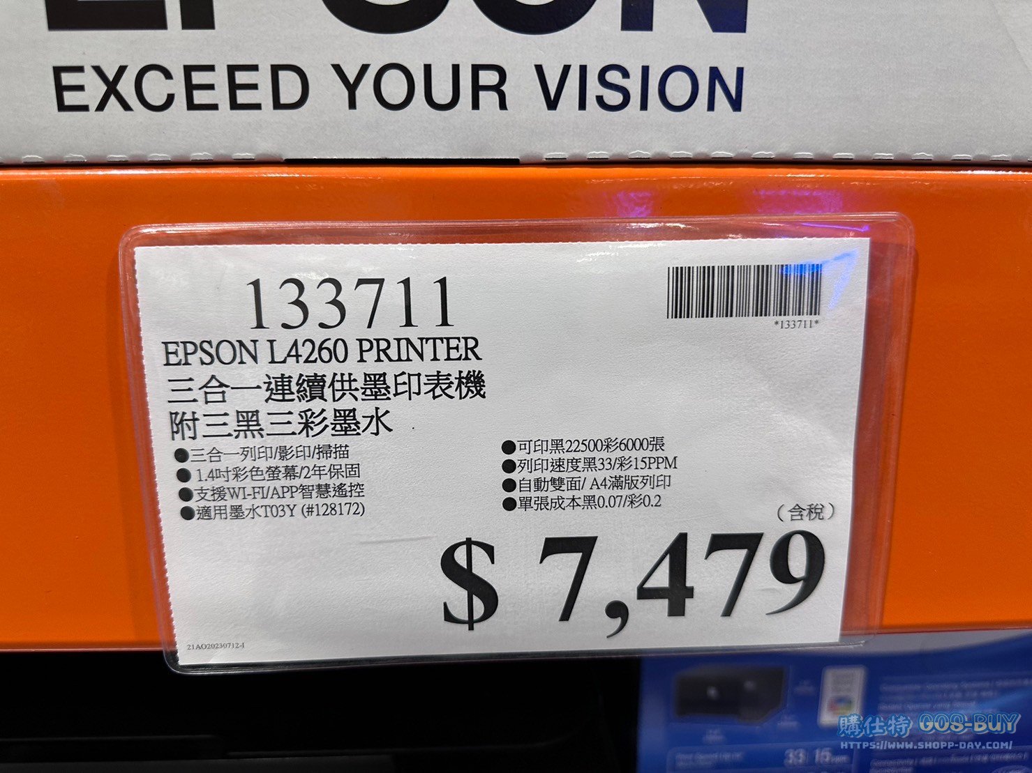 家電子產品印表機 EPSON L4260 三合一連續供墨印表機#133711 By 網站小編 2022 年 5 月 11 日 494 產品資訊 產品資訊 產品名稱 EPSON L4260 PRINTER 三合一連續供墨印表機 附三黑三彩墨水 #133711 價格 7479 產地 中國或菲律賓 包裝規格 一台(型號:L4260) 保存期限 保固兩年 備註 三合一列印/影印/掃描1.4吋彩色螢幕/2年保固支援WI-FI/APP智能遙控通用墨水T03Y(#128172)可印黑22500彩6000張列印速度黑33/彩15PPM自動雙面/A4滿版列印單張成本黑0.07/彩0.22024/2/19查價價格由6999漲價至7479漲價480元。 →商品問題回報← 相關 標籤EPSON印表機愛普生連續供墨印表機 前一篇文章HAWK手提式多功能摺疊桌 #130975下一篇文章美膳雅全自動美式咖啡機#DGB-400TW#136408 網站小編https://shopp-day.com 或許你也感興趣 價格優惠資訊 2025好市多客製生日蛋糕價格表 價格優惠資訊 好市多Line社群加入方法 保健品&藥品 新甘木堅胃腸藥顆粒40包 #194496 購仕特-CosBuy 查詢排行 價格優惠資訊 2025好市多客製生日蛋糕價格表 價格優惠資訊 好市多Line社群加入方法 保健品&藥品 新甘木堅胃腸藥顆粒40包 #194496 價格優惠資訊 2025好市多會員護照-春季專案商品一覽表 價格優惠資訊 好市多美國牛肉整箱銷售價格表(2024/5/7) 裝載更多 熱門推薦 價格優惠資訊 Costco好市多 iphone14 Pro ProMax 價格表 價格優惠資訊 Costco 好市多 Apple Watch 2022年版價格表 家庭劇院 BOSE兩件式家庭劇院組 #137039 螢幕 MSI 27吋IPS電競螢幕FHD平面/144HZ OPTIX G271 #132273 其他電子產品 MIPRO 手提藍牙無線擴音機MA-708 #118489 裝載更多