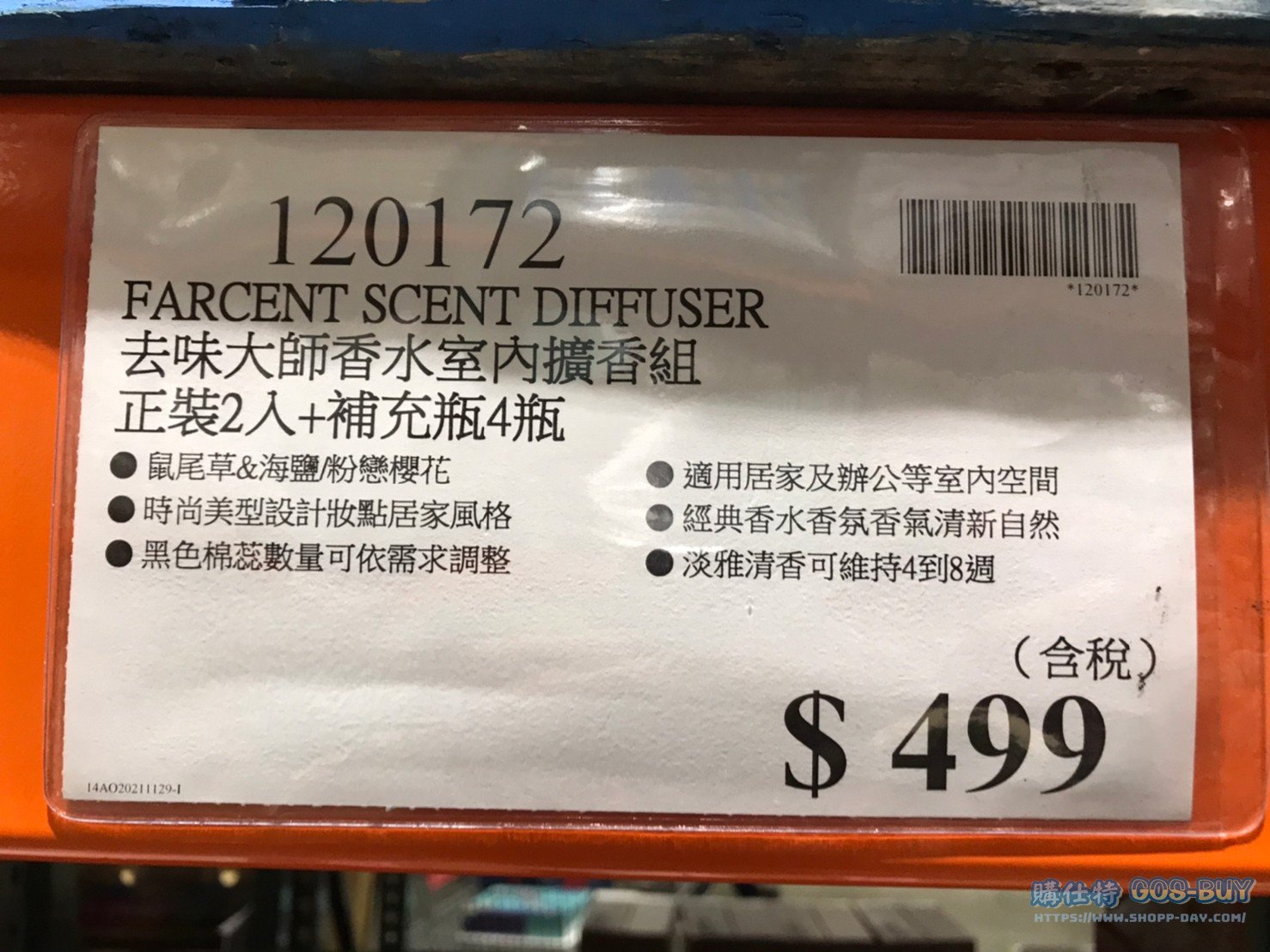 家廚房與居家生活相關 去味大師香水室內擴香組#120172 By 網站小編 2021 年 12 月 7 日 178 產品資訊 產品資訊 產品名稱FARCENT SCENT DIFFUSER SET 去味大師香水室內擴香組 正裝2入+補充瓶4瓶 #120172價格499產地台灣包裝規格正裝2入+補充瓶4瓶 保存期限3年備註鼠尾草&海鹽/粉戀櫻花時尚美型設計妝點居家風格黑色棉芯數量可依需求調整適用居家及辦公室等室內空間經典香水香氛香氣清新自然淡雅清香可維持4到8週2021黑五特價349→商品問題回報← 相關 標籤2021黑五商品去味大師擴香消臭除臭 前一篇文章GRAB-A-RAG 拋棄式超細纖維擦拭布 #1433889下一篇文章風倍清織物除菌消臭噴霧 #125928 網站小編https://shopp-day.com[td_block_7 block_template_id="td_block_template_8" custom_title="大家也在找" border_color="#81d742" category_id="_current_tag"] 或許你也感興趣 價格優惠資訊 2025好市多客製生日蛋糕價格表 價格優惠資訊 好市多Line社群加入方法 保健品&藥品 新甘木堅胃腸藥顆粒40包 #194496 購仕特-CosBuy 查詢排行 價格優惠資訊 2025好市多客製生日蛋糕價格表 價格優惠資訊 好市多Line社群加入方法 保健品&藥品 新甘木堅胃腸藥顆粒40包 #194496 價格優惠資訊 2025好市多會員護照-春季專案商品一覽表 價格優惠資訊 好市多美國牛肉整箱銷售價格表(2024/5/7) 裝載更多 熱門推薦 廚房與居家生活相關 普拿疼伏冒熱飲20包 #84499 廚房與居家生活相關 DOMAINE DE LA BAUME 波姆酒莊金牌FITOU紅酒 #121971 廚房與居家生活相關 SIMON LI三人座牛皮沙發#1695608 廚房與居家生活相關 TAISHO大正胃腸藥顆粒52包 #126969 廚房與居家生活相關 IDEA NUOVA 摺疊椅 #1393843 裝載更多