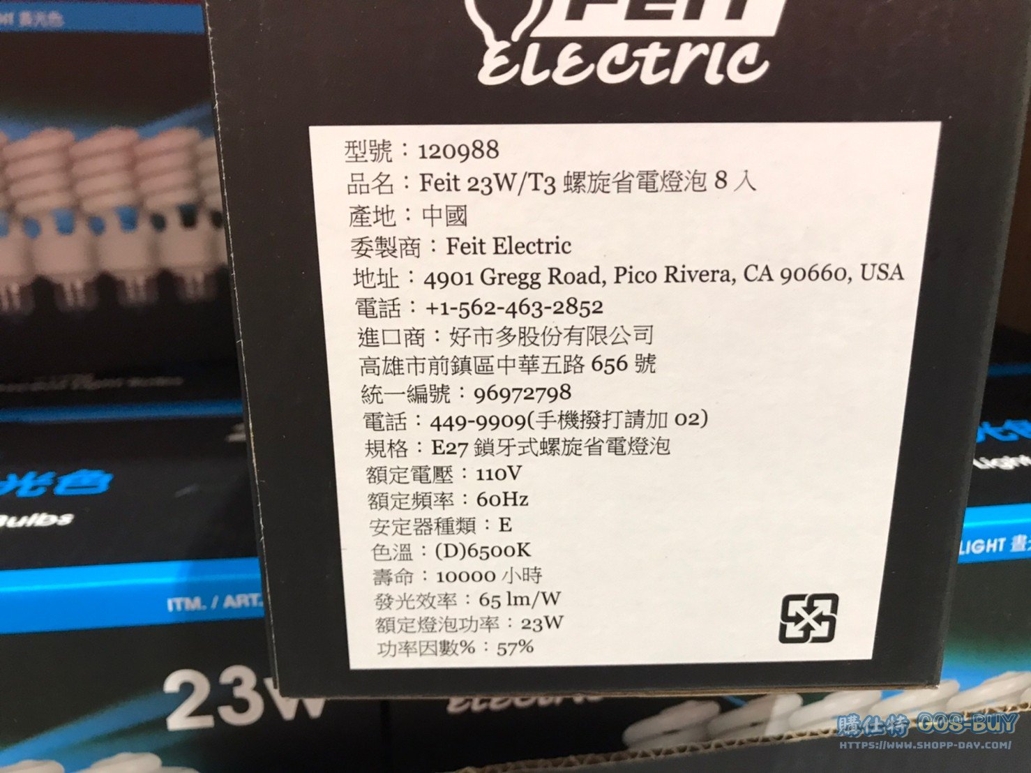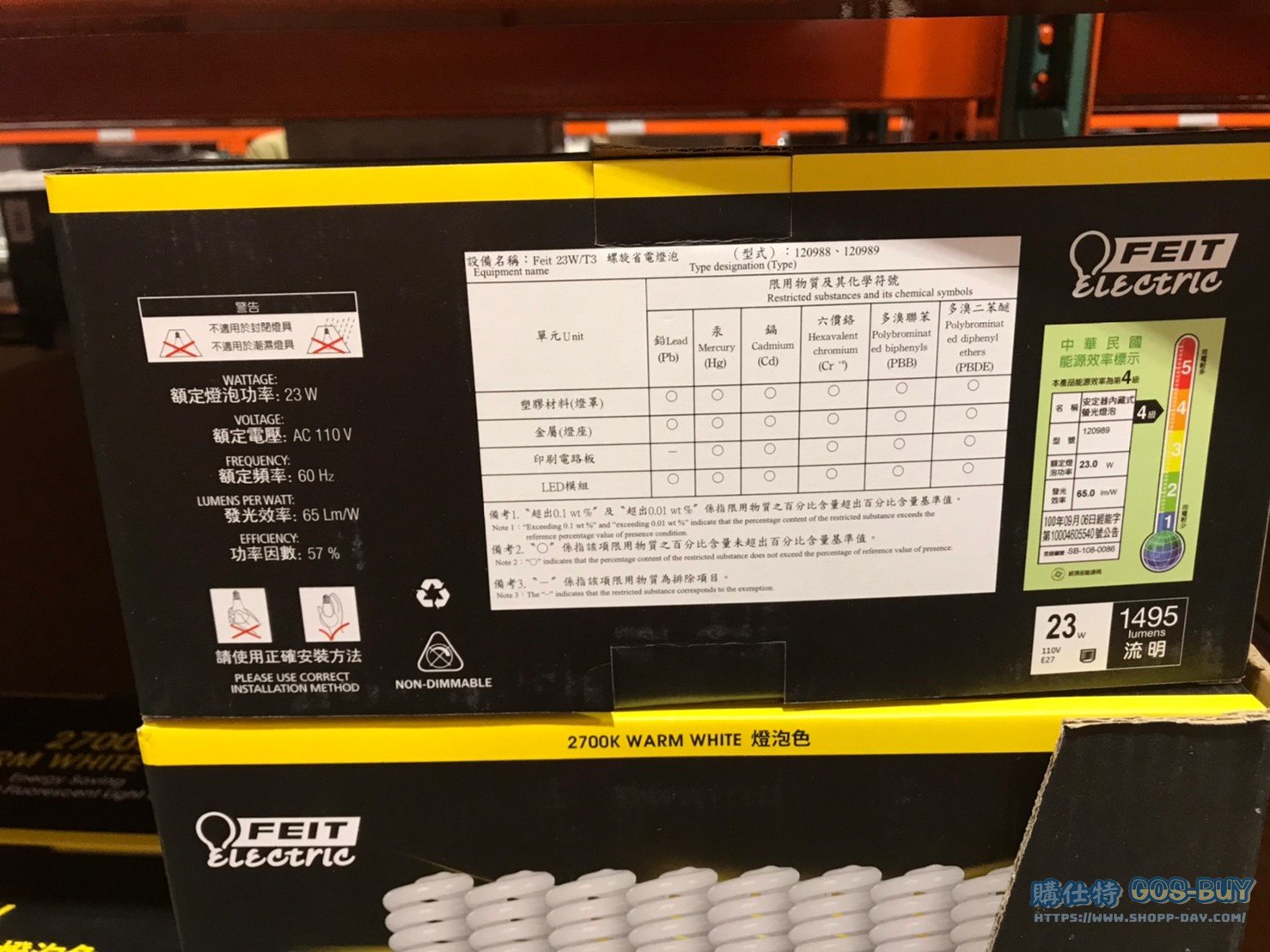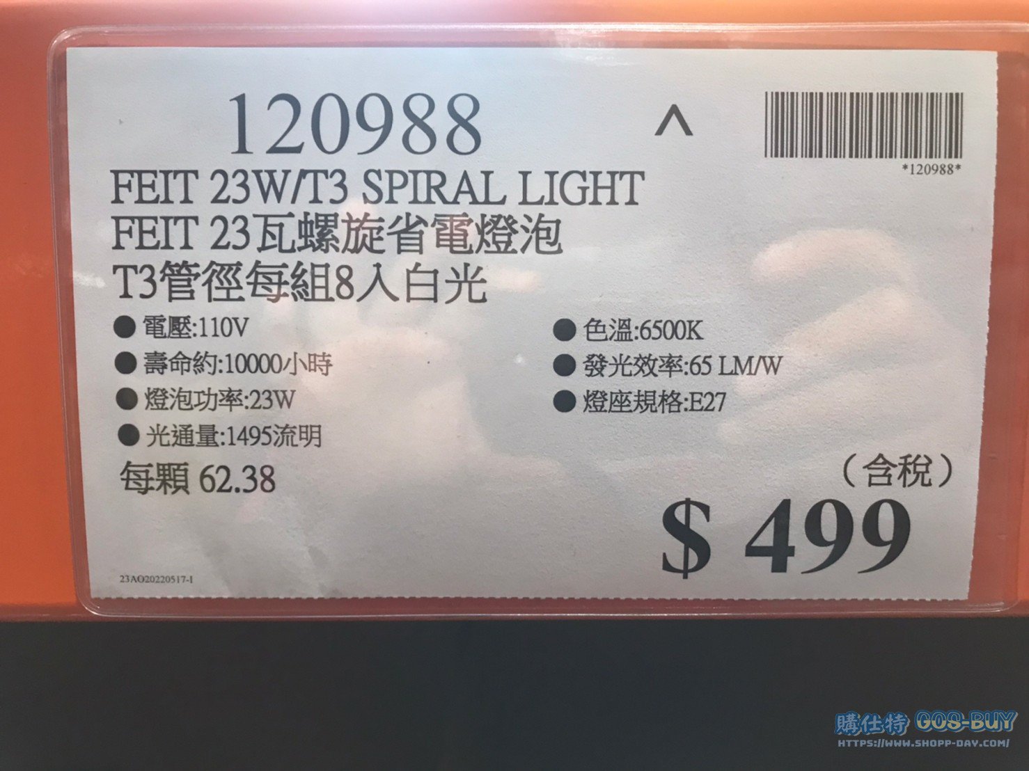 家家電產品 FEIT 23瓦螺旋省電燈泡T3管徑白光/黃光 #120988 #120989 By 網站小編 2022 年 6 月 14 日 471 產品資訊 產品資訊 產品名稱FEIT 23W/T3 SPIRAL LIGHT 23瓦螺旋省電燈泡T3管徑每組8入白光/黃光 #120988 #120989價格499產地中國包裝規格一組8入白光/黃光保存期限 N/A備註電壓:110V壽命約:10000小時燈泡功率:23W光通量:1495流明色溫:6500K/2700K發光效率:65 LM/W燈座規格:E27→商品問題回報← 相關 標籤FEIT燈泡省電燈泡 前一篇文章FEIT 15W LED球泡燈黃光/白光 #121856 #121855下一篇文章STERNOHOME戶外太陽燈4入 #2322008 網站小編https://shopp-day.com 或許你也感興趣 價格優惠資訊 2025好市多客製生日蛋糕價格表 價格優惠資訊 好市多Line社群加入方法 保健品&藥品 新甘木堅胃腸藥顆粒40包 #194496 購仕特-CosBuy 查詢排行 價格優惠資訊 2025好市多客製生日蛋糕價格表 價格優惠資訊 好市多Line社群加入方法 保健品&藥品 新甘木堅胃腸藥顆粒40包 #194496 價格優惠資訊 2025好市多會員護照-春季專案商品一覽表 價格優惠資訊 好市多美國牛肉整箱銷售價格表(2024/5/7) 裝載更多 熱門推薦 咖啡機 DOLCE GUSTO GENIO S+ COMBO 雀巢義式膠囊咖啡機 含128顆咖啡膠囊 #128877 咖啡機 PHILIPS ESPRESSO MACHINE全自動義式咖啡機 #130890 冰箱 SHARP夏普變頻雙門冰箱253公升 SJ-H25Y-WH #137098 戶外用品 11呎懸臂式LED遮陽傘含底座 #2127229 家電產品 SAMSUNG FOLLOWME 43吋移動式智慧聯網螢幕組#151647 裝載更多