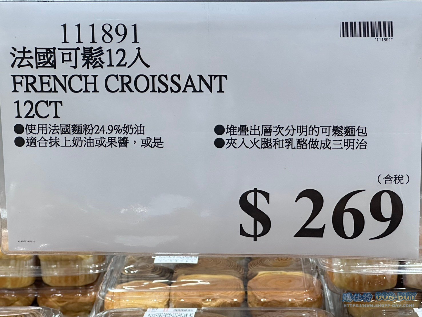 家食品麵包類 法國可鬆12入#111891 By 網站小編 2022 年 3 月 14 日 644 產品資訊 產品資訊 產品名稱 FRENCH CROISSANT 12CT 法國可鬆12入 #111891 價格 269 產地 台灣 包裝規格 12入 保存期限 依包裝所示 備註 使用法國麵粉24.9%奶油堆疊出層次分明的可鬆麵包適合抹上奶油或果醬或是夾入火腿和乳酪做成三明治2022/11/2查價價格由198漲價為219漲價21元。2024/6/5查價價格由219漲價為269漲價50元。 →商品問題回報← 相關 標籤可頌法國麵包 前一篇文章MARBLE BREAD 6CT 大理石麵包6入 #121335下一篇文章KIRIN’S ICHIBAN KURONAMA 麒麟一番搾黑(生)啤酒 350ML X24(CAN) #74265 網站小編https://shopp-day.com 或許你也感興趣 價格優惠資訊 2025好市多客製生日蛋糕價格表 價格優惠資訊 好市多Line社群加入方法 保健品&藥品 新甘木堅胃腸藥顆粒40包 #194496 購仕特-CosBuy 查詢排行 價格優惠資訊 2025好市多客製生日蛋糕價格表 價格優惠資訊 好市多Line社群加入方法 保健品&藥品 新甘木堅胃腸藥顆粒40包 #194496 價格優惠資訊 2025好市多會員護照-春季專案商品一覽表 價格優惠資訊 好市多美國牛肉整箱銷售價格表(2024/5/7) 裝載更多 熱門推薦 價格優惠資訊 2025好市多客製生日蛋糕價格表 價格優惠資訊 好市多美國牛肉整箱銷售價格表(2024/5/7) 價格優惠資訊 好市多日本和牛價格表 2024.4.29更新 冷藏食品 美國特選無骨牛小排火鍋片#25737 冷藏食品 舊振南英式馬芬米福堡#143387 裝載更多