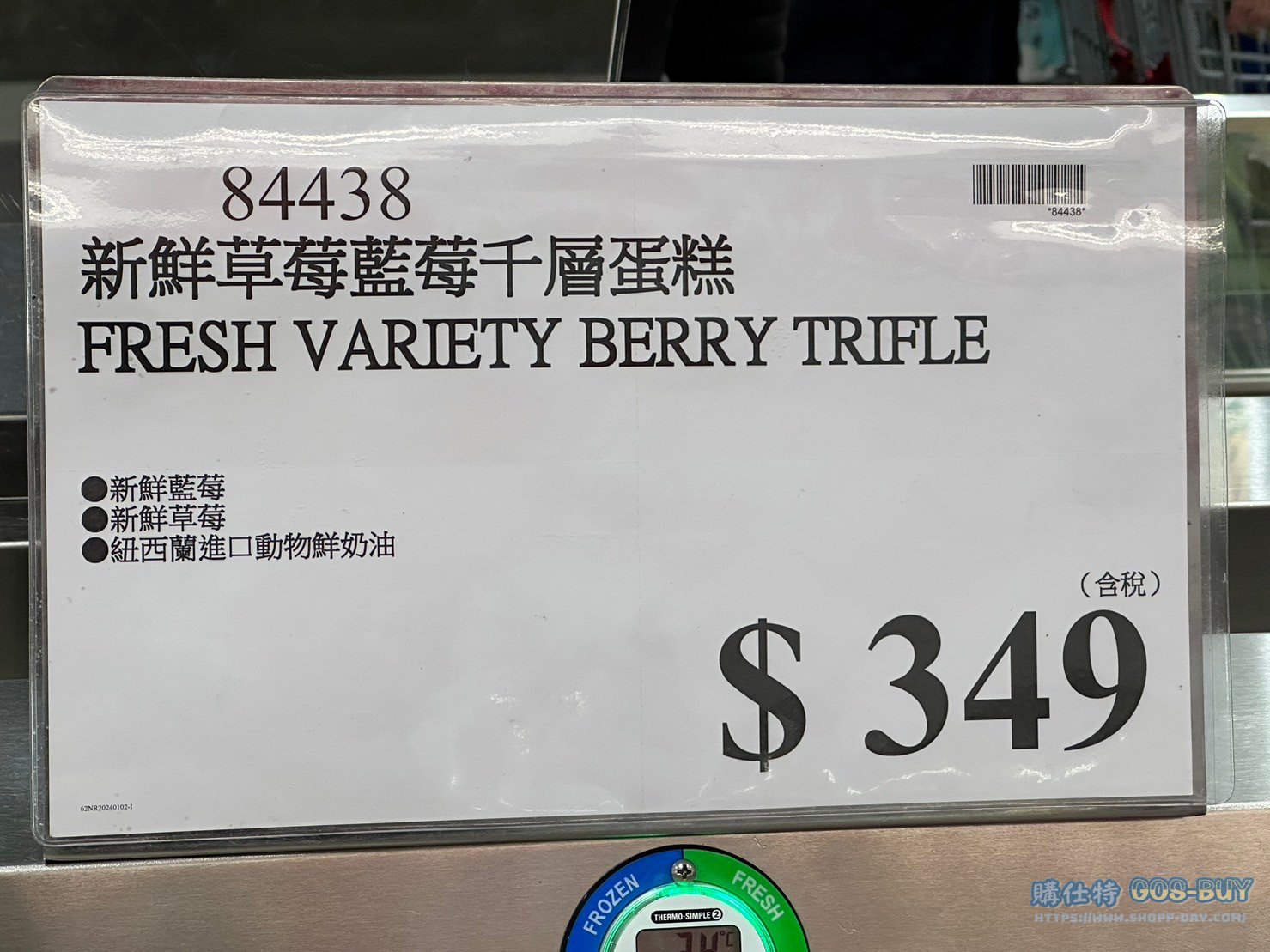 家食品麵包類蛋糕 新鮮草莓藍莓千層蛋糕#84438 By 網站小編 2022 年 2 月 9 日 450 產品資訊 產品資訊 產品名稱FRESH VARIETY BERRY TRIFLE 新鮮草莓藍莓千層蛋糕 #84438價格349產地台灣包裝規格依包裝所示保存期限依包裝所示備註新鮮草莓 新鮮藍莓紐西蘭進口動物鮮奶油2024/1/24查價價格由299漲價為349漲價50元 →商品問題回報← 相關 標籤草莓藍莓蛋糕 前一篇文章蘋果酥派8入 #133674下一篇文章HARDYS VR MOSCATO 夏迪VR麝香白葡萄酒 750ML X6 BOTTLES #116294 網站小編https://shopp-day.com 或許你也感興趣 價格優惠資訊 2025好市多客製生日蛋糕價格表 價格優惠資訊 好市多Line社群加入方法 保健品&藥品 新甘木堅胃腸藥顆粒40包 #194496 購仕特-CosBuy 查詢排行 價格優惠資訊 2025好市多客製生日蛋糕價格表 價格優惠資訊 好市多Line社群加入方法 保健品&藥品 新甘木堅胃腸藥顆粒40包 #194496 價格優惠資訊 2025好市多會員護照-春季專案商品一覽表 價格優惠資訊 好市多美國牛肉整箱銷售價格表(2024/5/7) 裝載更多 熱門推薦 價格優惠資訊 2025好市多客製生日蛋糕價格表 價格優惠資訊 好市多美國牛肉整箱銷售價格表(2024/5/7) 價格優惠資訊 好市多日本和牛價格表 2024.4.29更新 冷藏食品 美國特選無骨牛小排火鍋片#25737 冷藏食品 舊振南英式馬芬米福堡#143387 裝載更多