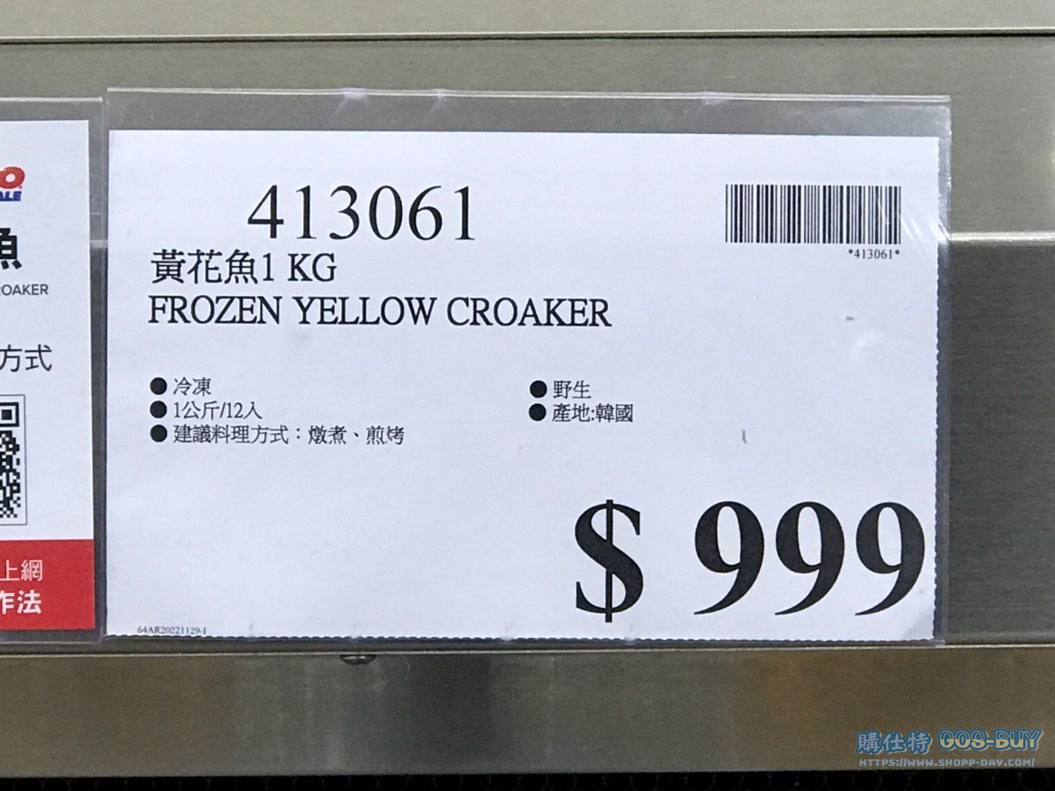 家食品麵包類冷凍食品 黃花魚1KG #413061 By 網站小編 2022 年 5 月 18 日 229 料理參考可觀看下方好市多官方料理影片 產品資訊 產品資訊 產品名稱 FROZEN YELLOW CORBINA 黃花魚1KG #413061 價格 999 產地 韓國 包裝規格 1公斤 保存期限 依包裝所示 備註 冷凍 1公斤/12入建議料理方式:燉煮、煎烤野生黃花魚 產地:韓國2023/1/25查價價格由1199降價為999降價-200元 →商品問題回報← 相關 標籤海鮮黃魚 前一篇文章MASI AMARONE經典紅葡萄酒 #134331下一篇文章HAMBURGER 日式漢堡排佐奶油蘑菇飯 #136666 網站小編https://shopp-day.com 或許你也感興趣 價格優惠資訊 2025好市多客製生日蛋糕價格表 價格優惠資訊 好市多Line社群加入方法 保健品&藥品 新甘木堅胃腸藥顆粒40包 #194496 購仕特-CosBuy 查詢排行 價格優惠資訊 2025好市多客製生日蛋糕價格表 價格優惠資訊 好市多Line社群加入方法 保健品&藥品 新甘木堅胃腸藥顆粒40包 #194496 價格優惠資訊 2025好市多會員護照-春季專案商品一覽表 價格優惠資訊 好市多美國牛肉整箱銷售價格表(2024/5/7) 裝載更多 熱門推薦 價格優惠資訊 2025好市多客製生日蛋糕價格表 價格優惠資訊 好市多美國牛肉整箱銷售價格表(2024/5/7) 價格優惠資訊 好市多日本和牛價格表 2024.4.29更新 冷藏食品 美國特選無骨牛小排火鍋片#25737 冷藏食品 舊振南英式馬芬米福堡#143387 裝載更多