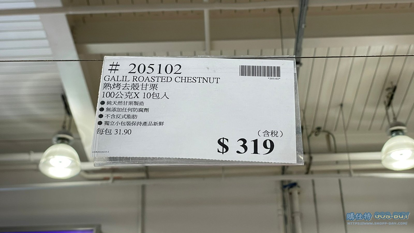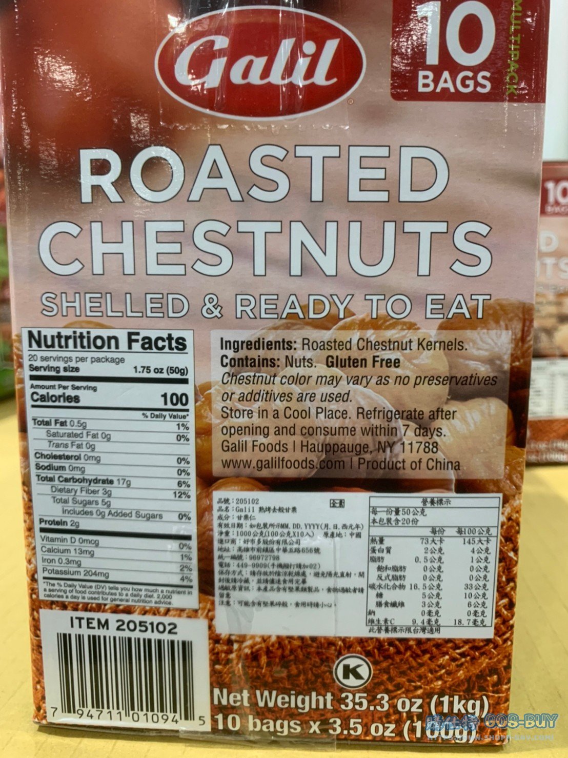 家零食&飲料中國零食 GALIL ROASTED CHESTNUT 熟烤去殼甘栗 100公克 X10包 #205102 By 網站小編 2022 年 3 月 27 日 316 產品資訊 產品資訊 產品名稱GALIL ROASTED CHESTNUT 熟烤去殼甘栗 100公克 X10包 #205102價格319產地中國包裝規格100公克 X10包保存期限依包裝所示備註純天然甘栗製造無添加任何防腐劑不含反式脂肪獨立小包裝保持產品新鮮→商品問題回報← 相關 標籤栗子甘栗 前一篇文章THAT’S IT.MINI FRUIT BAR 迷你水果條綜合包 24入 共480公克 #1361170下一篇文章善存葉黃素20MG 115粒 #117306 網站小編https://shopp-day.com 或許你也感興趣 價格優惠資訊 2025好市多客製生日蛋糕價格表 價格優惠資訊 好市多Line社群加入方法 保健品&藥品 新甘木堅胃腸藥顆粒40包 #194496 購仕特-CosBuy 查詢排行 價格優惠資訊 2025好市多客製生日蛋糕價格表 價格優惠資訊 好市多Line社群加入方法 保健品&藥品 新甘木堅胃腸藥顆粒40包 #194496 價格優惠資訊 2025好市多會員護照-春季專案商品一覽表 價格優惠資訊 好市多美國牛肉整箱銷售價格表(2024/5/7) 裝載更多 熱門推薦 美國零食 科克蘭葡萄乾巧克力#959987 冷藏飲品 BLUE DIAMOND 無糖原味杏仁飲1.89L #129794 西班牙零食 MR.BROWNIE 巧克力布郎尼#153753 泰國零食 A&R牛奶巧克力迷你甜筒餅乾#1744884 比利時零食 科克蘭烈酒與波特酒巧克力 #1351451 裝載更多