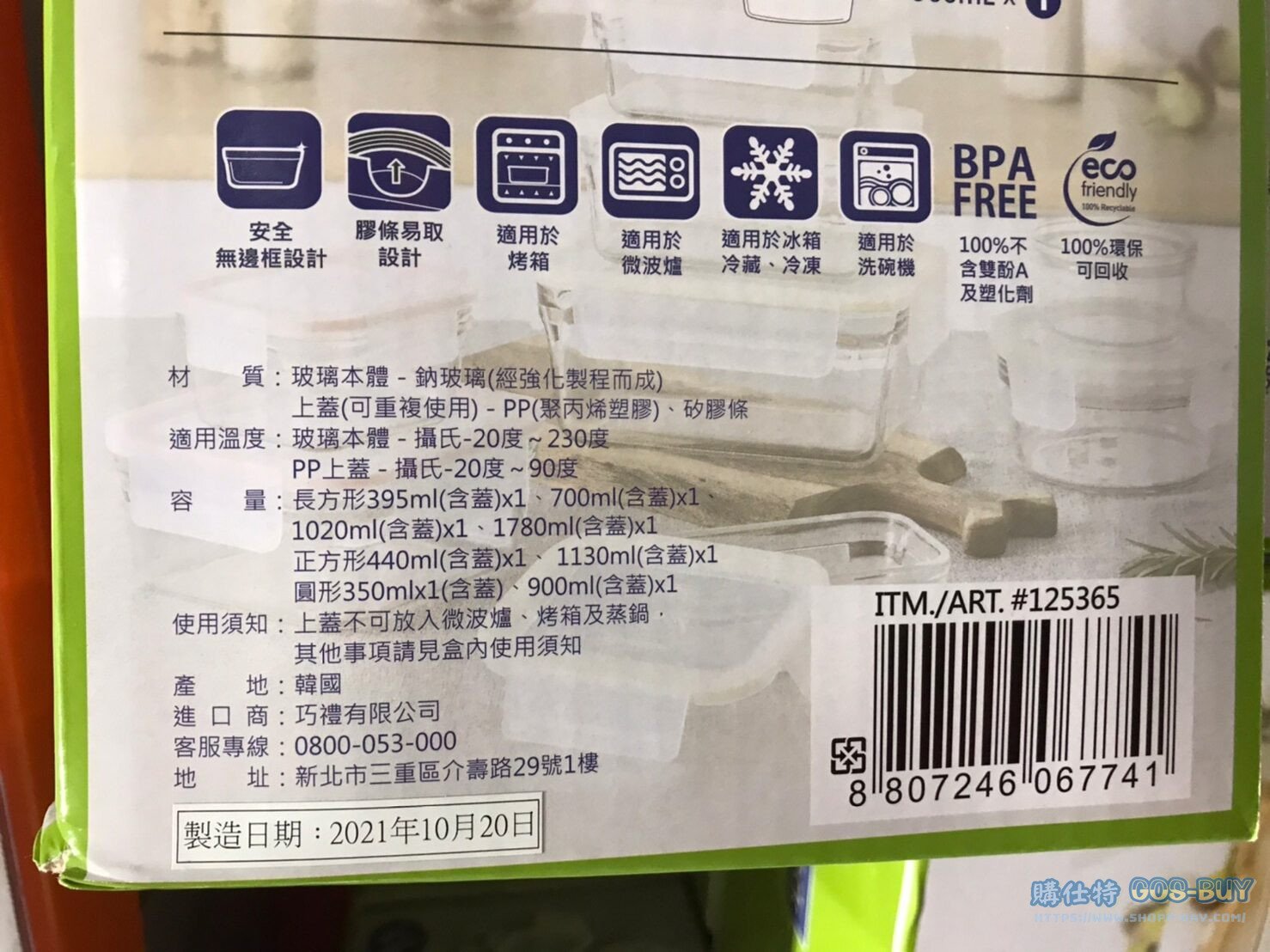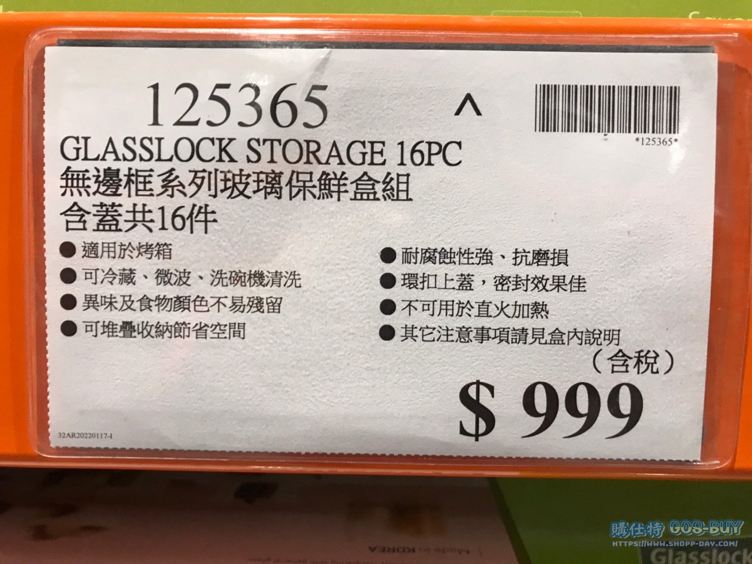 家廚房與居家生活相關 GLASSLOCK無邊框系列玻璃保鮮盒組 #125365 By 網站小編 2022 年 6 月 14 日 315 產品資訊 產品資訊 產品名稱GLASSLOCK STORAGE 16PC 無邊框系列玻璃保鮮盒組 含蓋共16件 #125365價格999產地韓國包裝規格一組(16件組)保存期限 N/A備註適用於烤箱可冷藏、微波、洗碗機清洗異味及食物顏色不易殘留可堆疊收納節省空間耐腐蝕性強、抗磨損環扣上蓋,密封效果佳不可用於直火加熱其他注意事項請見盒內說明→商品問題回報← 相關 標籤保鮮盒收納盒玻璃 前一篇文章FELLI 密封收納罐含蓋20件組 #132193下一篇文章DURACELL1500流明露營燈 五種充電方式 #2622117 網站小編https://shopp-day.com 或許你也感興趣 價格優惠資訊 2025好市多客製生日蛋糕價格表 價格優惠資訊 好市多Line社群加入方法 保健品&藥品 新甘木堅胃腸藥顆粒40包 #194496 購仕特-CosBuy 查詢排行 價格優惠資訊 2025好市多客製生日蛋糕價格表 價格優惠資訊 好市多Line社群加入方法 保健品&藥品 新甘木堅胃腸藥顆粒40包 #194496 價格優惠資訊 2025好市多會員護照-春季專案商品一覽表 價格優惠資訊 好市多美國牛肉整箱銷售價格表(2024/5/7) 裝載更多 熱門推薦 廚房與居家生活相關 普拿疼伏冒熱飲20包 #84499 廚房與居家生活相關 DOMAINE DE LA BAUME 波姆酒莊金牌FITOU紅酒 #121971 廚房與居家生活相關 SIMON LI三人座牛皮沙發#1695608 廚房與居家生活相關 TAISHO大正胃腸藥顆粒52包 #126969 廚房與居家生活相關 IDEA NUOVA 摺疊椅 #1393843 裝載更多