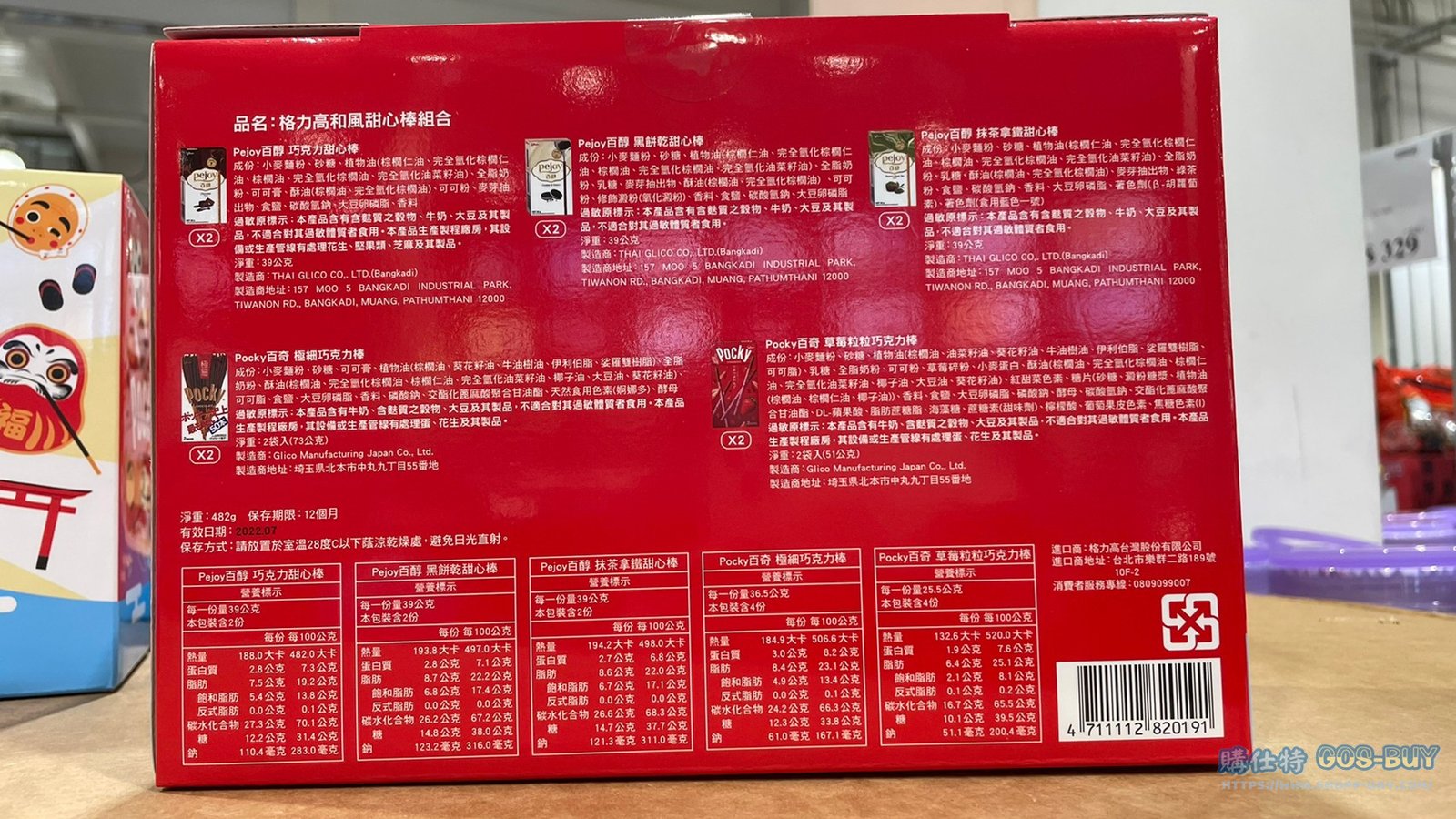 家零食&飲料日本零食 GLICO VARIETY PACK 格力高和風甜心棒組合 10盒/482公克 #134409 By 網站小編 2022 年 2 月 1 日 186 產品資訊 產品資訊 產品名稱GLICO VARIETY PACK 格力高和風甜心棒組合 10盒/482公克 #134409價格469產地日本包裝規格10盒/482公克保存期限依包裝所示備註內含五種不同口味禮盒POCKY極細巧克力棒草莓顆粒巧克力棒PEJOY黑餅乾甜心棒巧克力甜心棒、抹茶拿鐵甜心獨享、分享皆是好選擇。 →商品問題回報← 相關 標籤巧克力棒格力高綜合巧克力 前一篇文章NESTLE KIT KAT 雀巢奇巧甜點巧克力綜合包17公克X45條 #124251下一篇文章克補B群+鋅加強錠 #976575 網站小編https://shopp-day.com 或許你也感興趣 價格優惠資訊 2025好市多客製生日蛋糕價格表 價格優惠資訊 好市多Line社群加入方法 保健品&藥品 新甘木堅胃腸藥顆粒40包 #194496 購仕特-CosBuy 查詢排行 價格優惠資訊 2025好市多客製生日蛋糕價格表 價格優惠資訊 好市多Line社群加入方法 保健品&藥品 新甘木堅胃腸藥顆粒40包 #194496 價格優惠資訊 2025好市多會員護照-春季專案商品一覽表 價格優惠資訊 好市多美國牛肉整箱銷售價格表(2024/5/7) 裝載更多 熱門推薦 美國零食 科克蘭葡萄乾巧克力#959987 冷藏飲品 BLUE DIAMOND 無糖原味杏仁飲1.89L #129794 西班牙零食 MR.BROWNIE 巧克力布郎尼#153753 泰國零食 A&R牛奶巧克力迷你甜筒餅乾#1744884 比利時零食 科克蘭烈酒與波特酒巧克力 #1351451 裝載更多