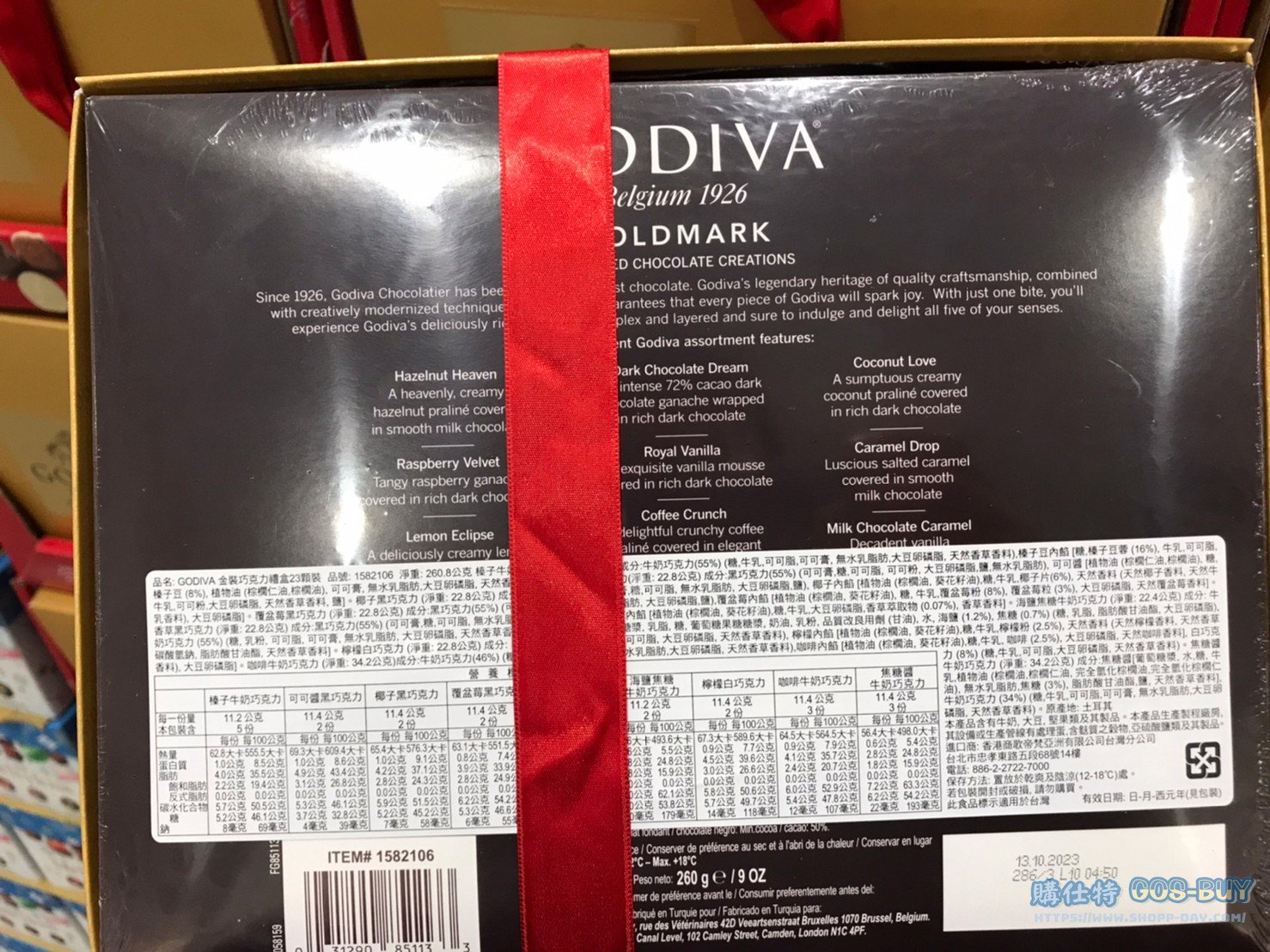 | 產品名稱 | GODIVA CHOCOLATE GIFT BOX 歌蒂梵巧克力金裝禮盒23顆 #1582106 |