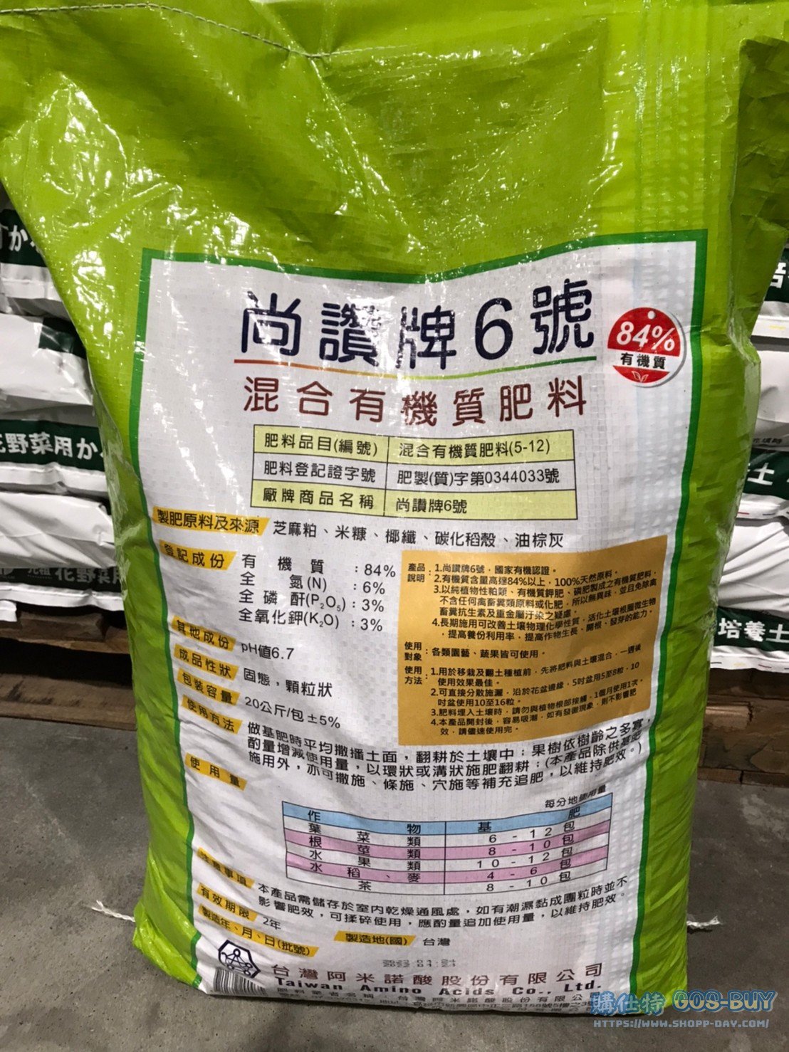 家運動戶外用品園藝相關 GRANULAR FERTILIZER 尚讚牌6號粒狀肥料20公斤 #126348 By 網站小編 2022 年 4 月 20 日 264 產品資訊 產品資訊 產品名稱GRANULAR FERTILIZER 尚讚牌6號粒狀肥料20公斤 #126348價格409產地台灣包裝規格20公斤保存期限兩年備註肥效持久,保水力佳增加土壤有機質改善土壤物理性質抑制土壤中線蟲的繁殖採100%純天然原料使植物安全、安心地生長種類多樣的營養源活化根圈微生物→商品問題回報← 相關 標籤培養土肥料 前一篇文章PROTOLEAF 花、野菜用有機質培養土#135051下一篇文章GTX SOLAR WALL LIGHT 4PK 太陽能壁燈四入組 #2322013 網站小編https://shopp-day.com[td_block_7 block_template_id="td_block_template_8" custom_title="大家也在找" border_color="#81d742" category_id="_current_tag"] 或許你也感興趣 價格優惠資訊 2025好市多客製生日蛋糕價格表 價格優惠資訊 好市多Line社群加入方法 保健品&藥品 新甘木堅胃腸藥顆粒40包 #194496 購仕特-CosBuy 查詢排行 價格優惠資訊 2025好市多客製生日蛋糕價格表 價格優惠資訊 好市多Line社群加入方法 保健品&藥品 新甘木堅胃腸藥顆粒40包 #194496 價格優惠資訊 2025好市多會員護照-春季專案商品一覽表 價格優惠資訊 好市多美國牛肉整箱銷售價格表(2024/5/7) 裝載更多 熱門推薦 戶外用品 12*16′ TARPS 2 PACK 多功能雙色帆布2入#1600091 園藝相關 好市多花束價格 #111590 #136064 #117849 #28013 旅行用品類 SAMSONITE 22+29吋行李箱二入組#140918 戶外用品 COHO 156公升冰桶 適合露營、釣魚 #1382241 汽機車用品 MICHELIN 米其林18吋輪胎PRIMACY SUV+輪胎 235/60 R18 103V #136585 裝載更多