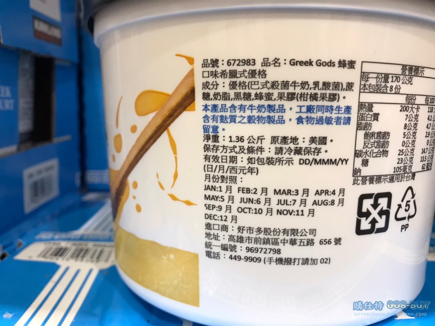 家食品麵包類乳酪 GREEK GODS蜂蜜口味希臘式優格#672983 By 網站小編 2022 年 3 月 4 日 767 產品資訊 產品資訊 產品名稱GREEK GODS HONEY YOGURT 蜂蜜口味希臘式優格1.36KG #672983價格469產地美國包裝規格1.36KG保存期限依包裝所示備註A級鮮乳製造含有七種活性有益菌無麩質、無人工香料口感濃郁有絲絨般的質地2022/7/6查價價格由359漲價為429漲價70元2022/11/2查價價格由429漲價為495漲價66元2024/5/24查價價格由495降價為469降價26元→商品問題回報← 相關 標籤GREEK GODS優格希臘式優格蜂蜜 前一篇文章JUICE TALK 果汁宣言 ORANGE JUICE 柳橙汁 2.17L X 2PK #116103下一篇文章科克蘭零脂希臘式優格 #599369 網站小編https://shopp-day.com 或許你也感興趣 價格優惠資訊 2025好市多客製生日蛋糕價格表 價格優惠資訊 好市多Line社群加入方法 保健品&藥品 新甘木堅胃腸藥顆粒40包 #194496 購仕特-CosBuy 查詢排行 價格優惠資訊 2025好市多客製生日蛋糕價格表 價格優惠資訊 好市多Line社群加入方法 保健品&藥品 新甘木堅胃腸藥顆粒40包 #194496 價格優惠資訊 2025好市多會員護照-春季專案商品一覽表 價格優惠資訊 好市多美國牛肉整箱銷售價格表(2024/5/7) 裝載更多 熱門推薦 價格優惠資訊 2025好市多客製生日蛋糕價格表 價格優惠資訊 好市多美國牛肉整箱銷售價格表(2024/5/7) 價格優惠資訊 好市多日本和牛價格表 2024.4.29更新 冷藏食品 美國特選無骨牛小排火鍋片#25737 冷藏食品 舊振南英式馬芬米福堡#143387 裝載更多